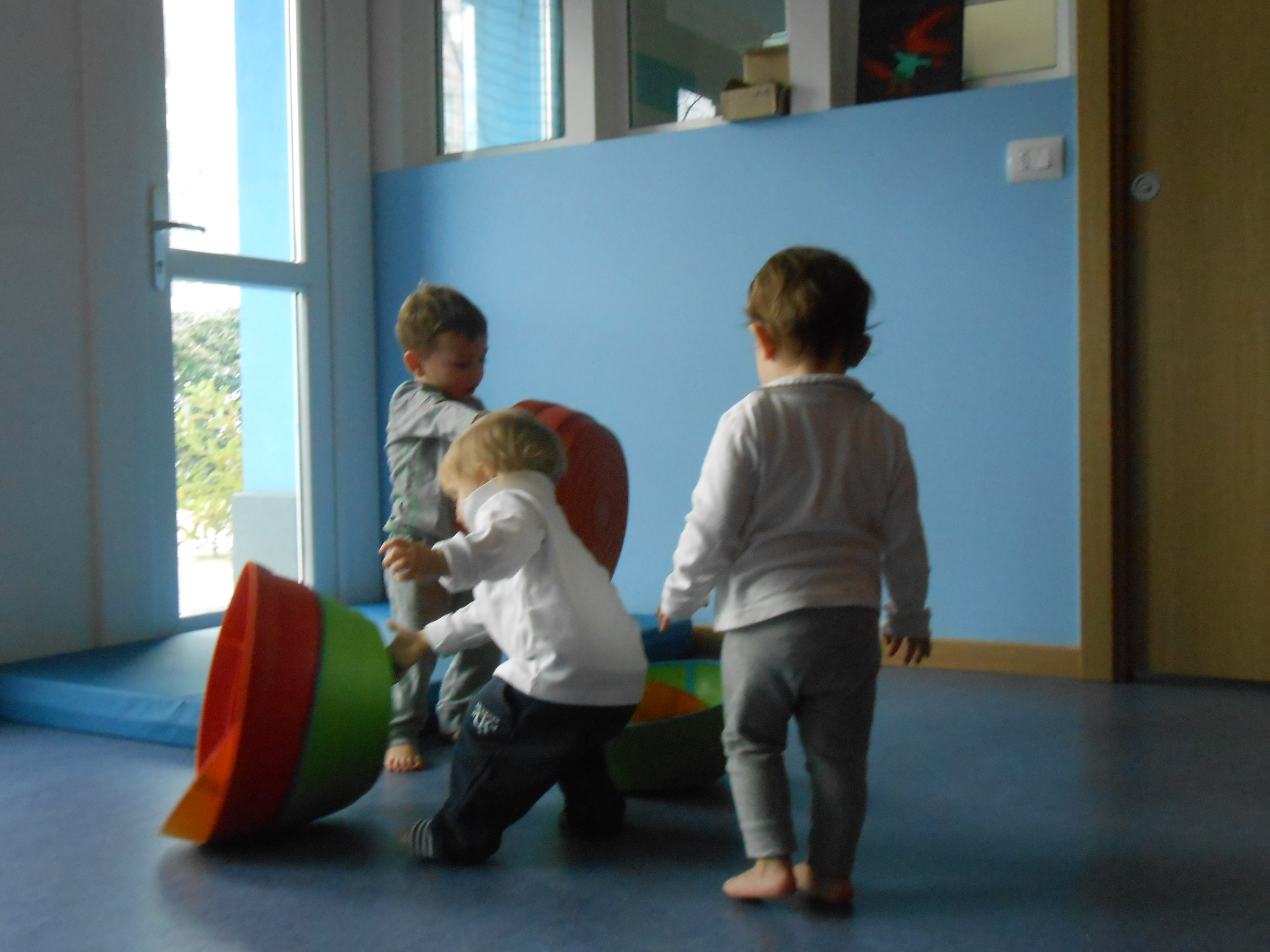 I bimbi una volta entrati osservano lo spazio e liberamente si dividono per esplorare meglio e per iniziare i propri giochi.