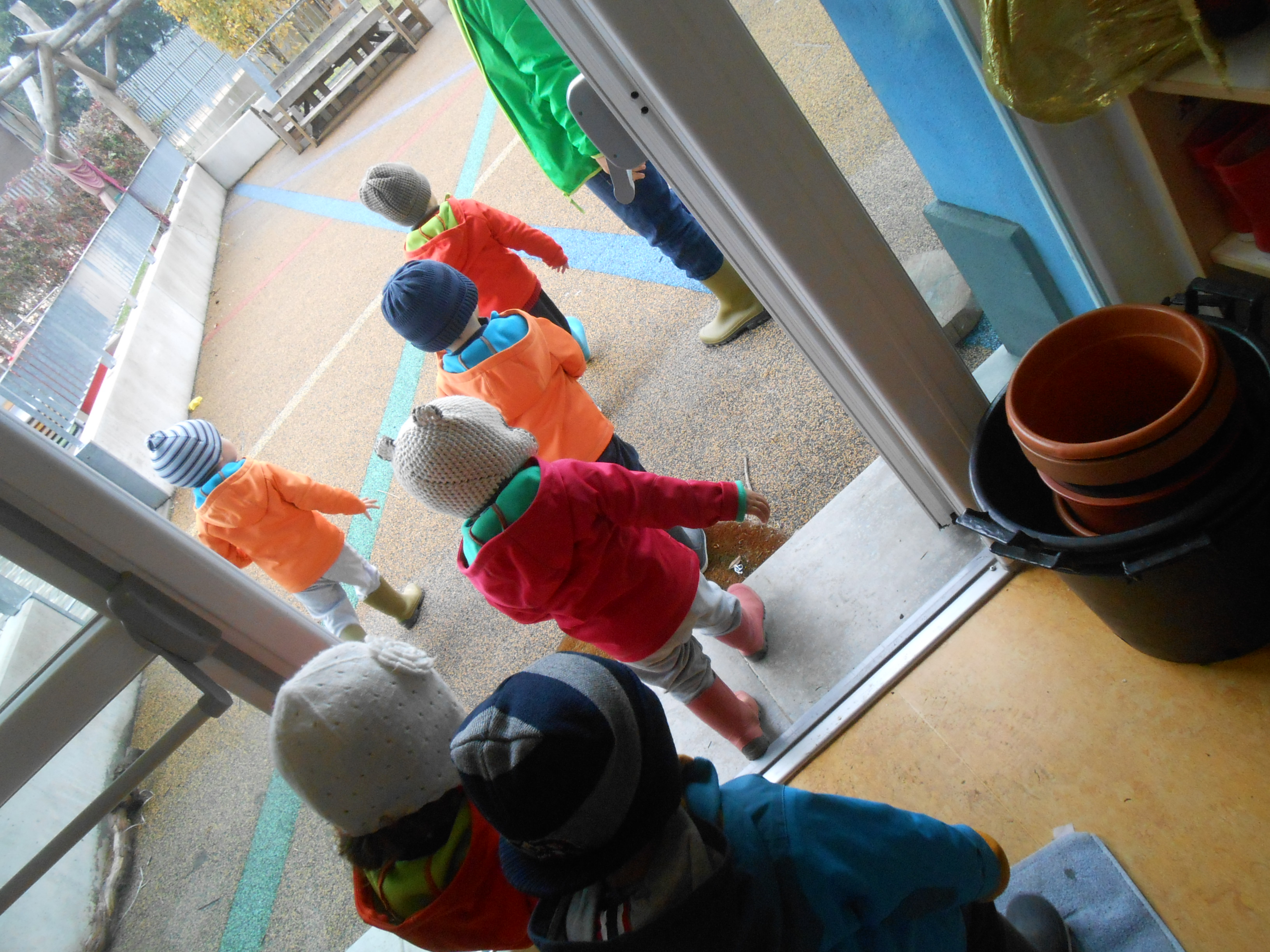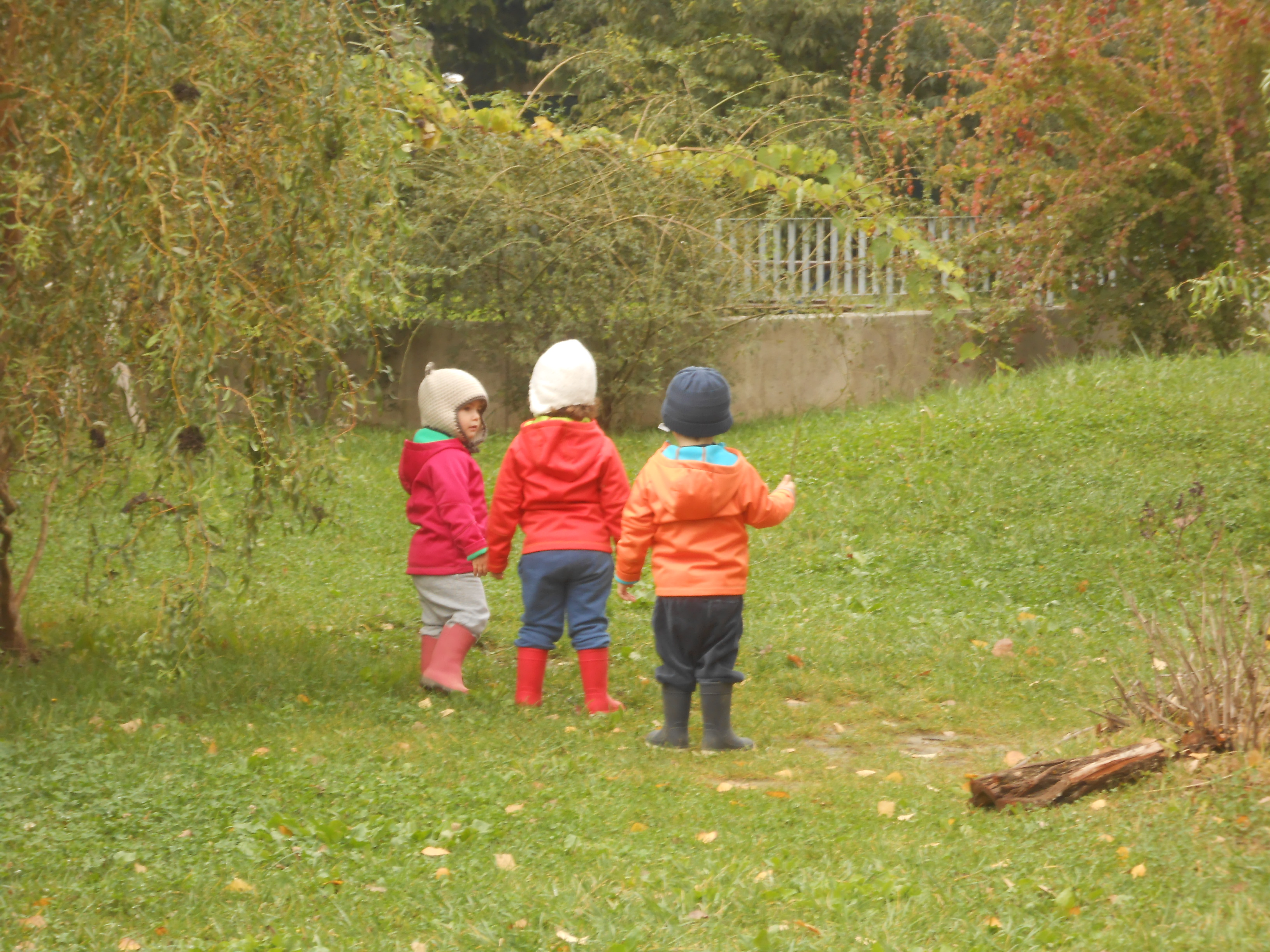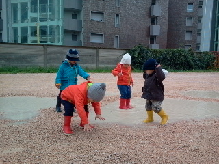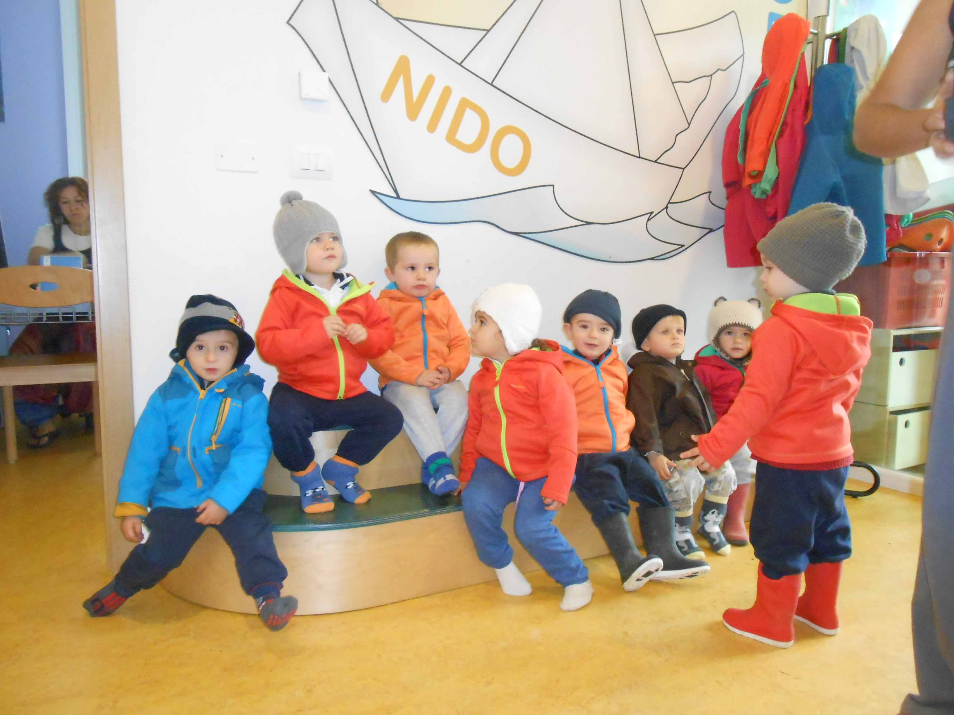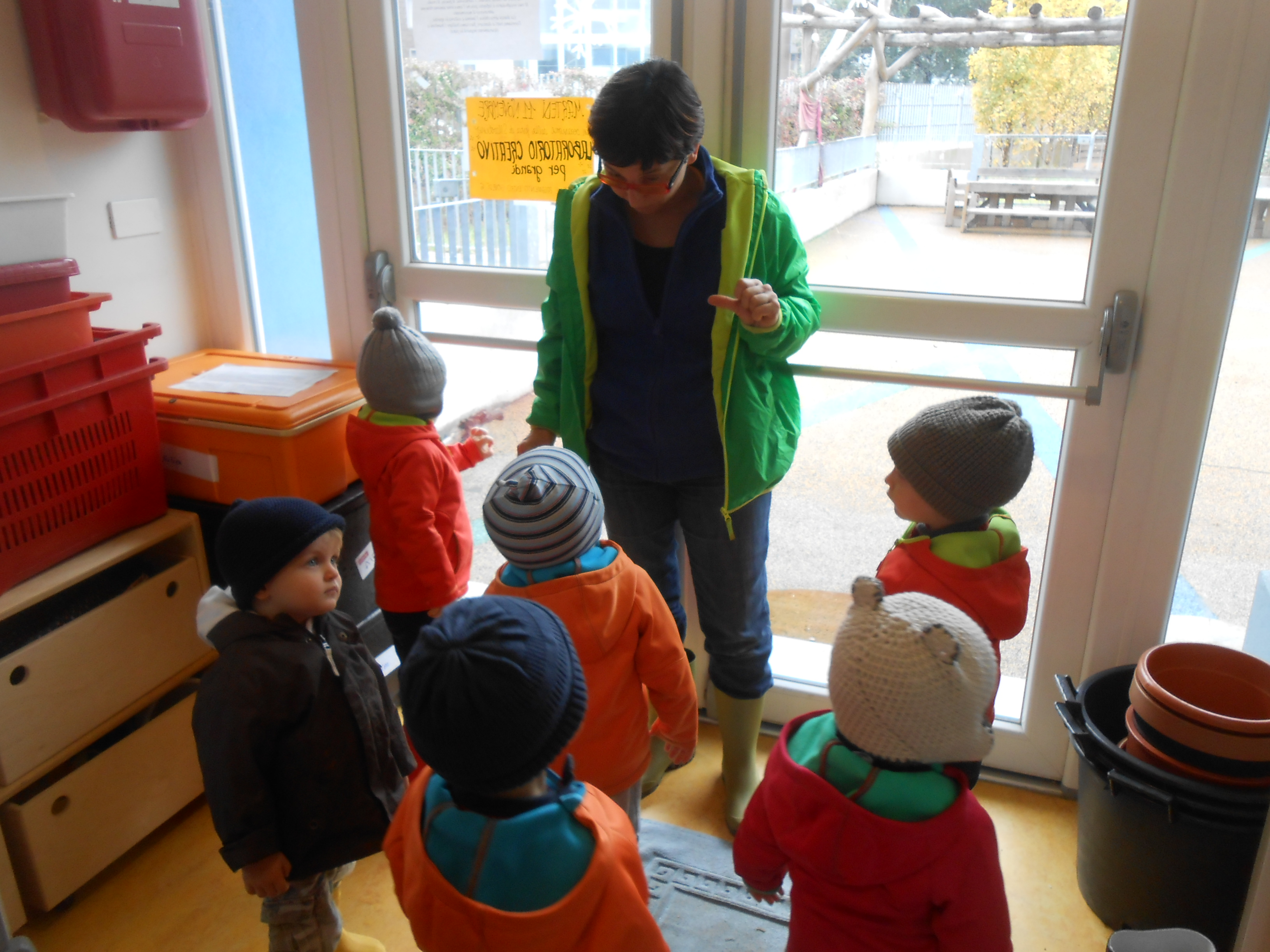 …convinti che non esista un cattivo tempo per uscire a divertirsi, per imparare, per “fare scuola”, per sporcarsi, per essere liberi! Casomai un cattivo abbigliamento. E così eccoci finalmente perfettamente equipaggiati, con semplicità, per fronteggiare caldi e asciutti, mille avventure e gite fuori dal Nido.