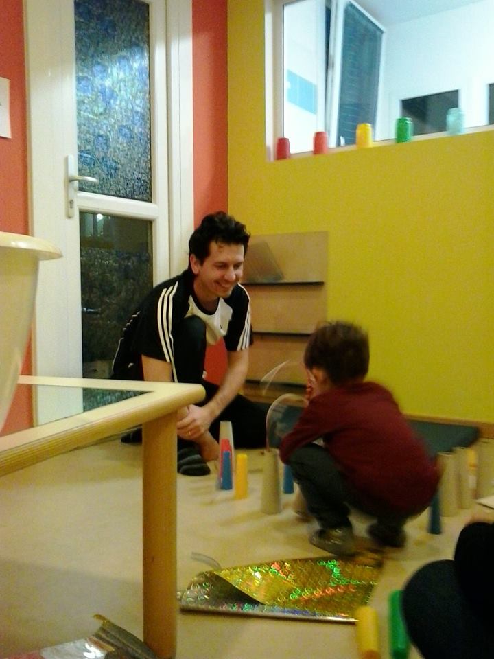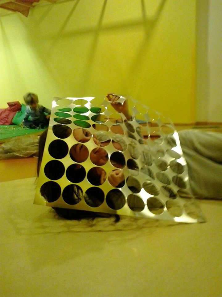 È proprio emozionante, qualche bimbo passa i primi minuti un po’ perplesso, quasi incredulo nel vedere papà o mamma, il proprio fratello o la propria sorella, cimentarsi nella realizzazione di astratte costruzioni, inventare magie di riflessi luminosi o andare alla ricerca del buio per poi trovarlo con soddisfazione tra tessuti a trama fitta o dentro tubi scuri.