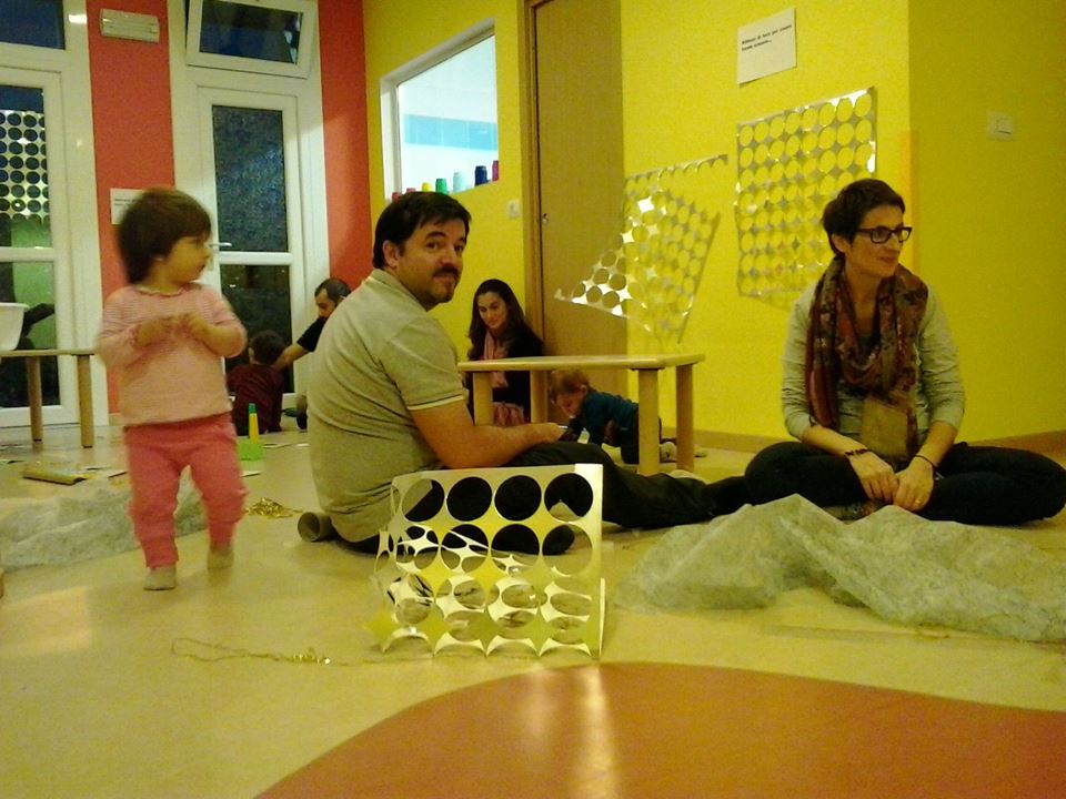 Questa domenica pomeriggio un po’ speciale i bimbi arrivano al Nido con mamma e papà, ma questa volta non li salutano come ogni mattina con un forte abbraccio, per poi entrare con la dada: questa volta anche mamma e papà si tolgono giacca e scarpe per entrare a scoprire quale gioco li aspetta!