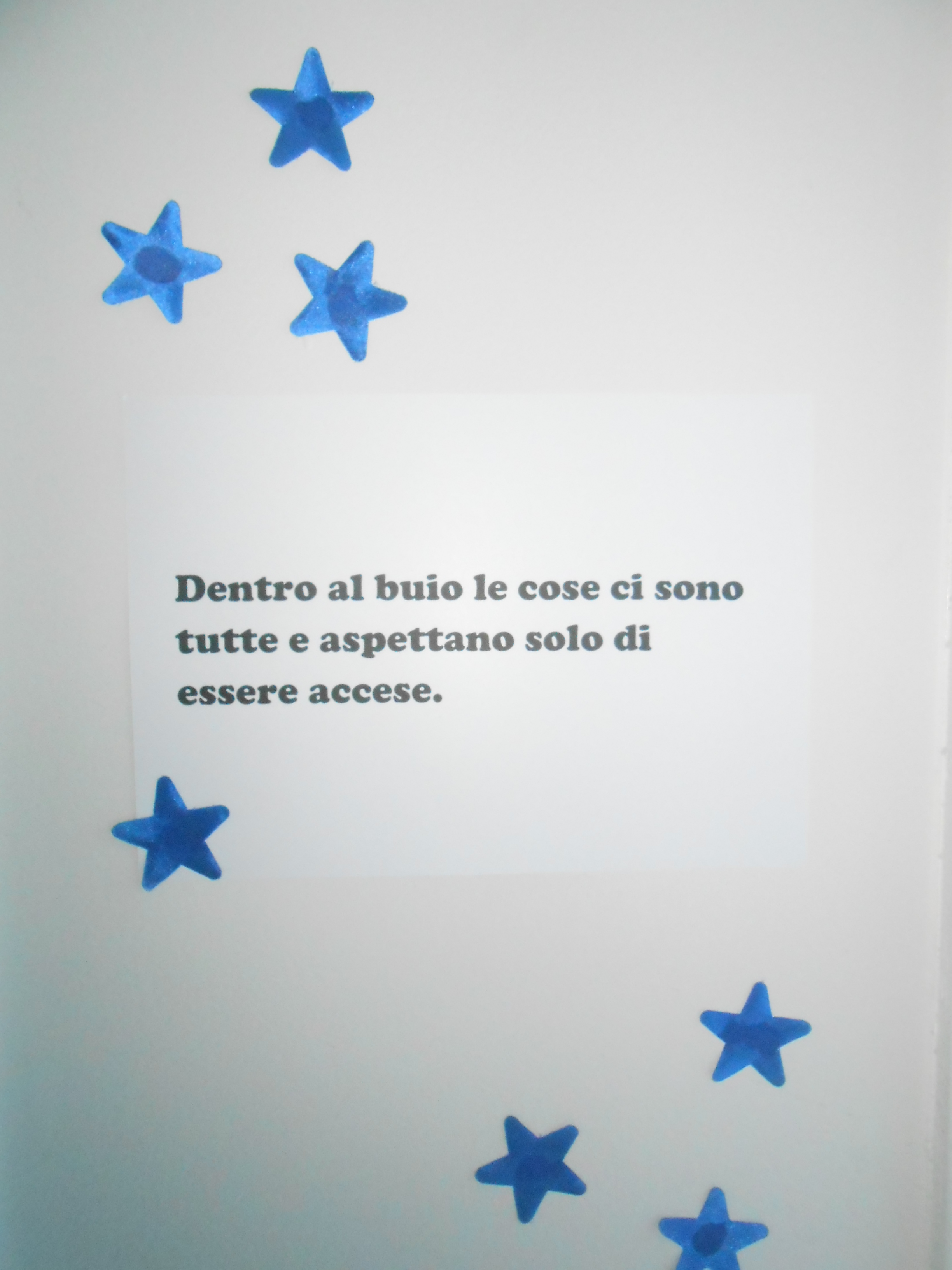 “Buio e luce si incontrano. Buio, silenzio, dolce, mamma, sorriso, profumo, sì, profumo e mani, per vedere, ascoltare, assaggiare, annusare, sfiorare il mondo. Tutto.” (da “Questo è il buio” Gianna Braghin)