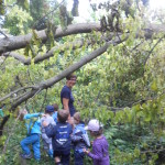 Finché dopo tanto vedere, camminare, correre, si è fatta ora di pranzo e qui la stanchezza per tutti si è fatta sentire: tiriamo fuori i panini e rimaniamo un po’ sotto gli alberi seduti e sonnolenti, ma la voglia di tornare a giocare è tanta e le corse riprendono senza indugio. Abbiamo ancora la vigna da esplorare…