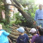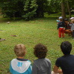 Quindi eccoci tutti qui in questo bel giardino, un’oasi protetta e semplice pensata proprio per i bambini e ciascuno di noi affronta la novità secondo la propria natura; chi con entusiasmo, chi con un po’ di turbamento, chi cercando di tenere tutto sotto controllo. In fondo non si conoscono i luoghi di questo bosco, non si sa come organizzarci e come si può fare. Un’ottima occasione per esplorare ed imparare! E poi non siamo soli, ci sono i Volontari del Bosco Sant’Anna, pronti e solerti nel darci una mano, indicarci gli spazi dove lasciare giacche e borse, e nell’aiutarci a vivere al meglio questa giornata!