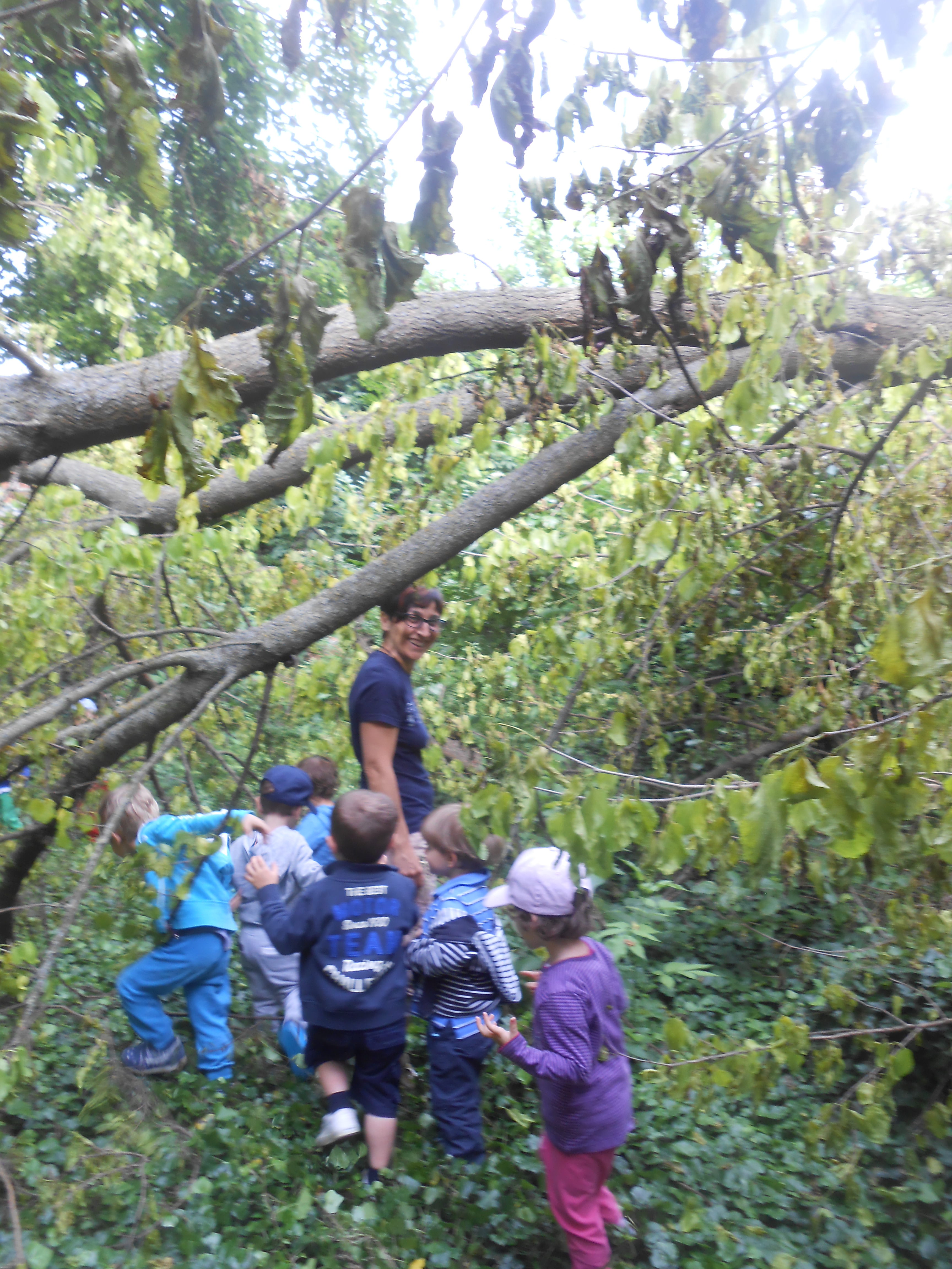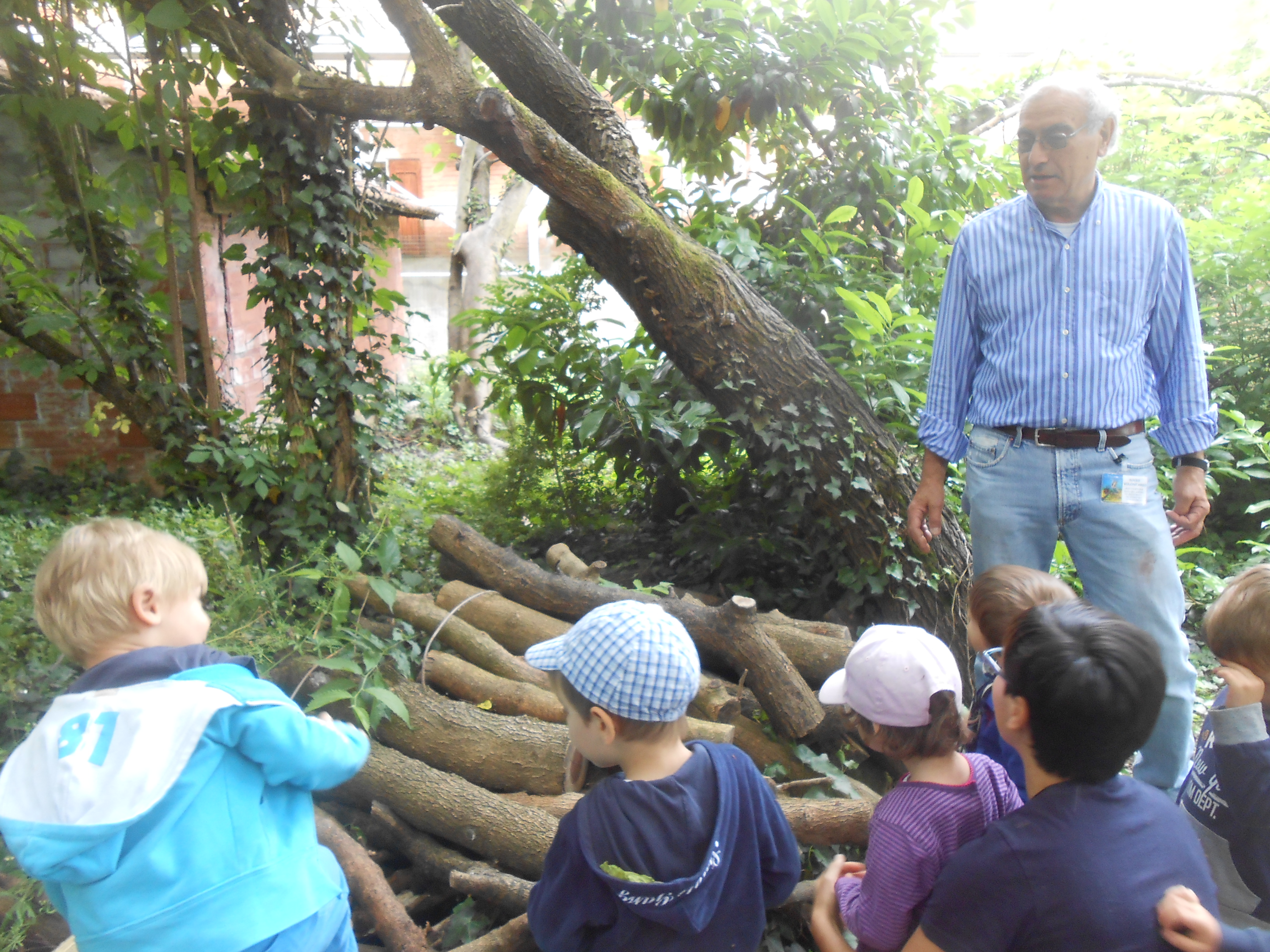 Quindi eccoci tutti qui in questo bel giardino, un’oasi protetta e semplice pensata proprio per i bambini e ciascuno di noi affronta la novità secondo la propria natura; chi con entusiasmo, chi con un po’ di turbamento, chi cercando di tenere tutto sotto controllo. In fondo non si conoscono i luoghi di questo bosco, non si sa come organizzarci e come si può fare. Un’ottima occasione per esplorare ed imparare! E poi non siamo soli, ci sono i Volontari del Bosco Sant’Anna, pronti e solerti nel darci una mano, indicarci gli spazi dove lasciare giacche e borse, e nell’aiutarci a vivere al meglio questa giornata!