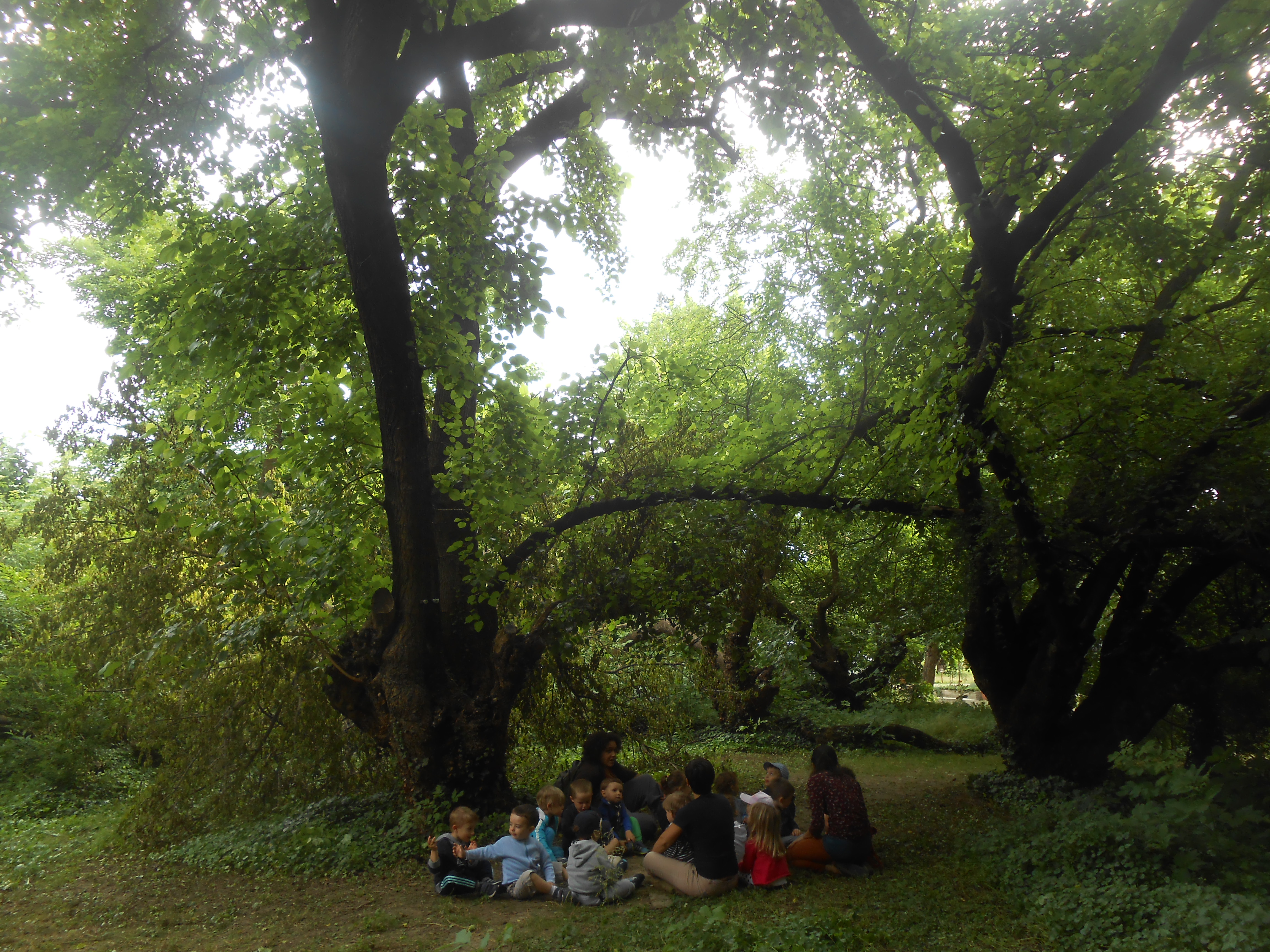 Entriamo allora  nel “Boschetto di fate e gnomi”.  Gli alberi sono imponenti, antichi, sanno di mistero e saggezza. Fanno a volte un po’ paura, i solchi sulla corteccia, lasciati dal tempo assumono forme di bocche strane dove provare ad infilare la mano. Ci sono le lumache grandi e sonnolente, e poi quella radura là sembra fatta apposta per passarci sotto e giocare. Quante cose da vedere, di cui stupirsi.