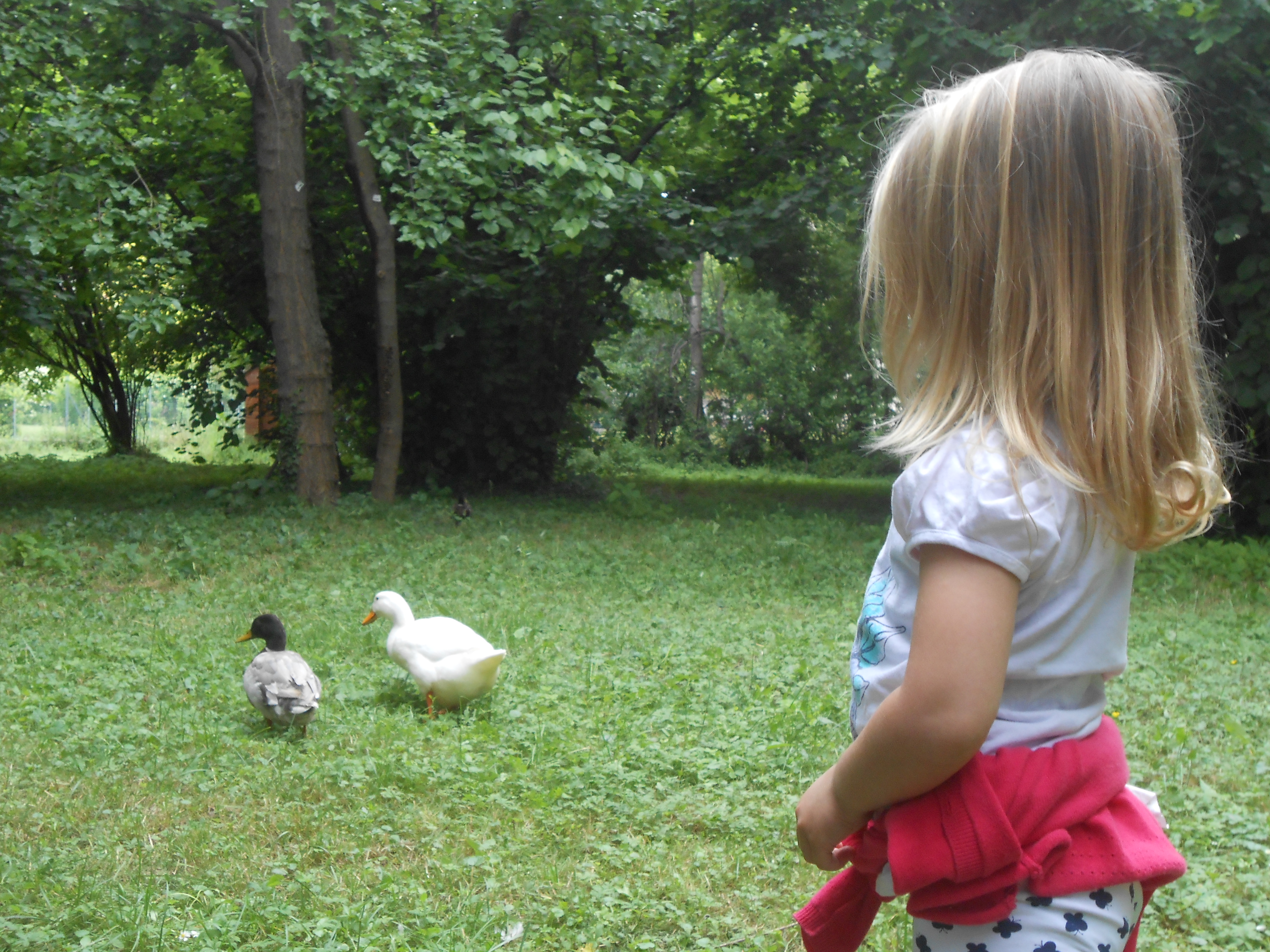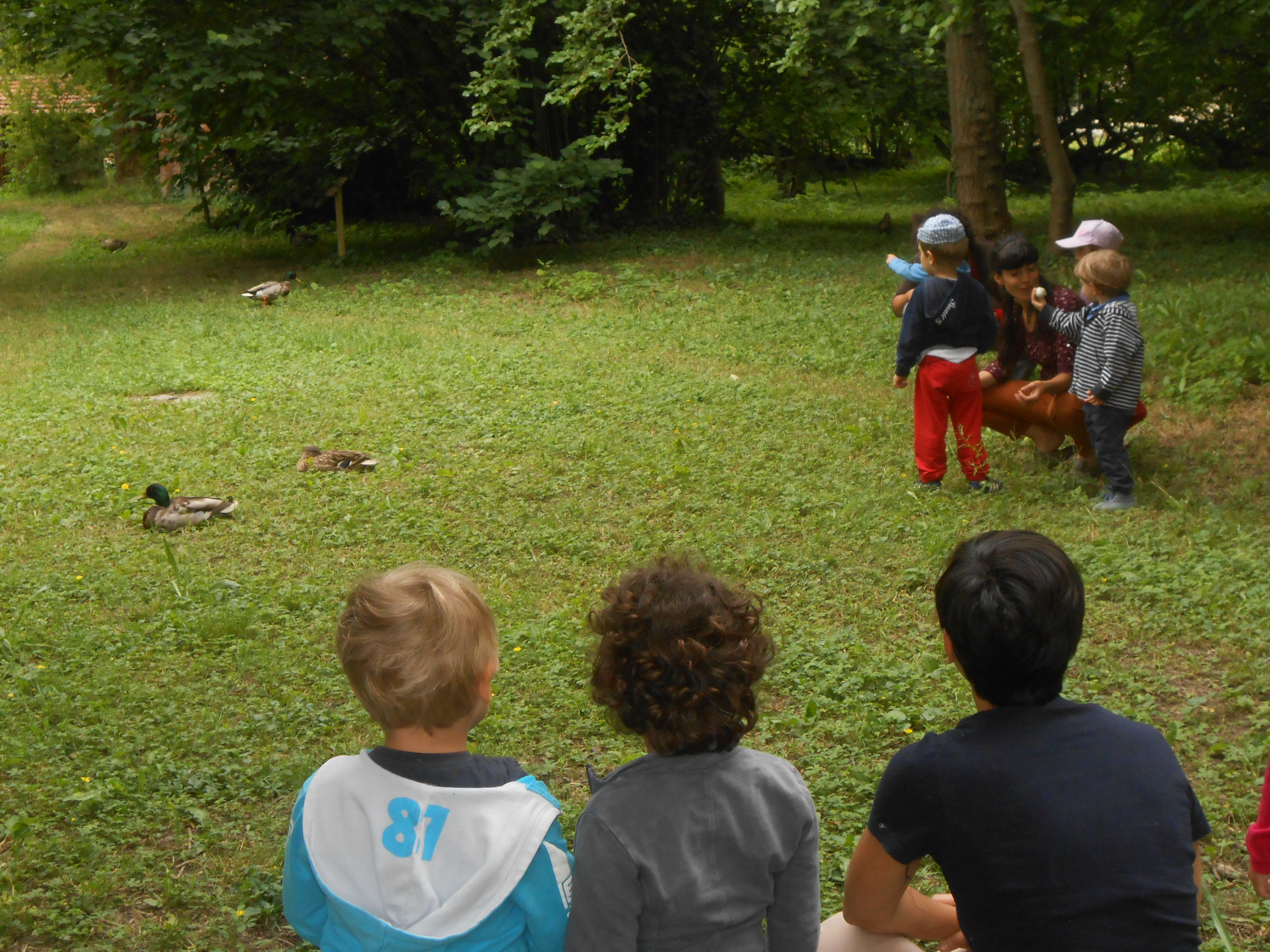 E’ stata una giornata davvero piena, per tutti, dade e bimbi: un’occasione per misurarci con un luogo nuovo e con spazi grandi, per stare insieme e osservazione il nostro rapporto con la natura e con gli animali in libertà, a volte poco vissuto nelle nostre giornate cittadine! Ei luoghi che non ci appartengono: come li trattiamo? Riusciamo a rapportarci con rispetto e con cura, semplicemente perché animali, alberi e piante sono tutti esseri viventi? O diamo per scontato la loro esistenza? E’ stato necessario riportare i bimbi a questo rapporto, così arricchente e nutriente: in che modo diamo da mangiare alle anitre? Cosa fanno, come si comportano? E le piante? Come toccarle, come esplorarle?