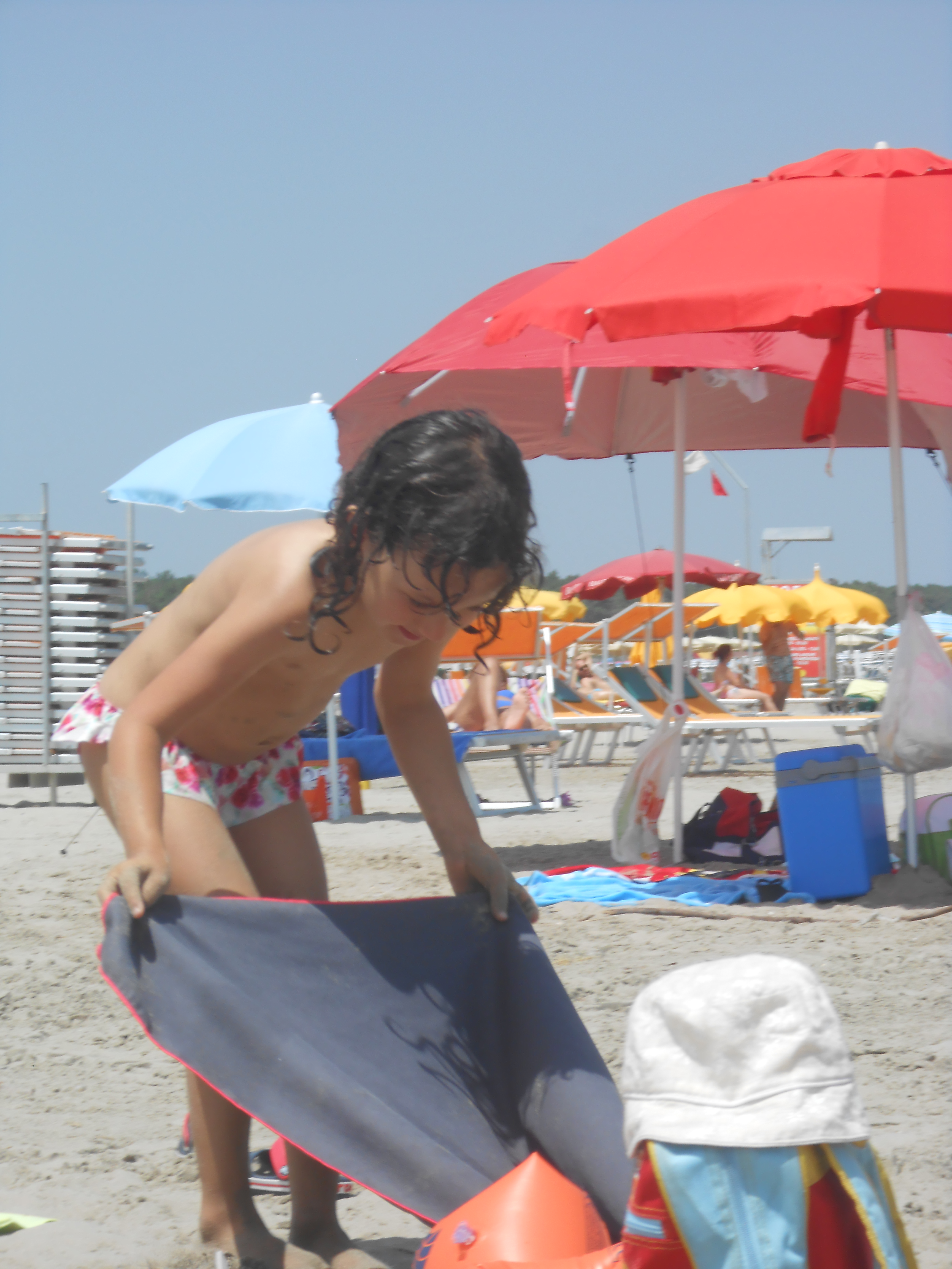 -Si bimbi è la spiaggia vera con la sabbia che quando e’ molto caldo ci brucia sotto i piedini e bisogna correre in acqua! E si i braccioli vi servono. Ne portiamo per tutti.