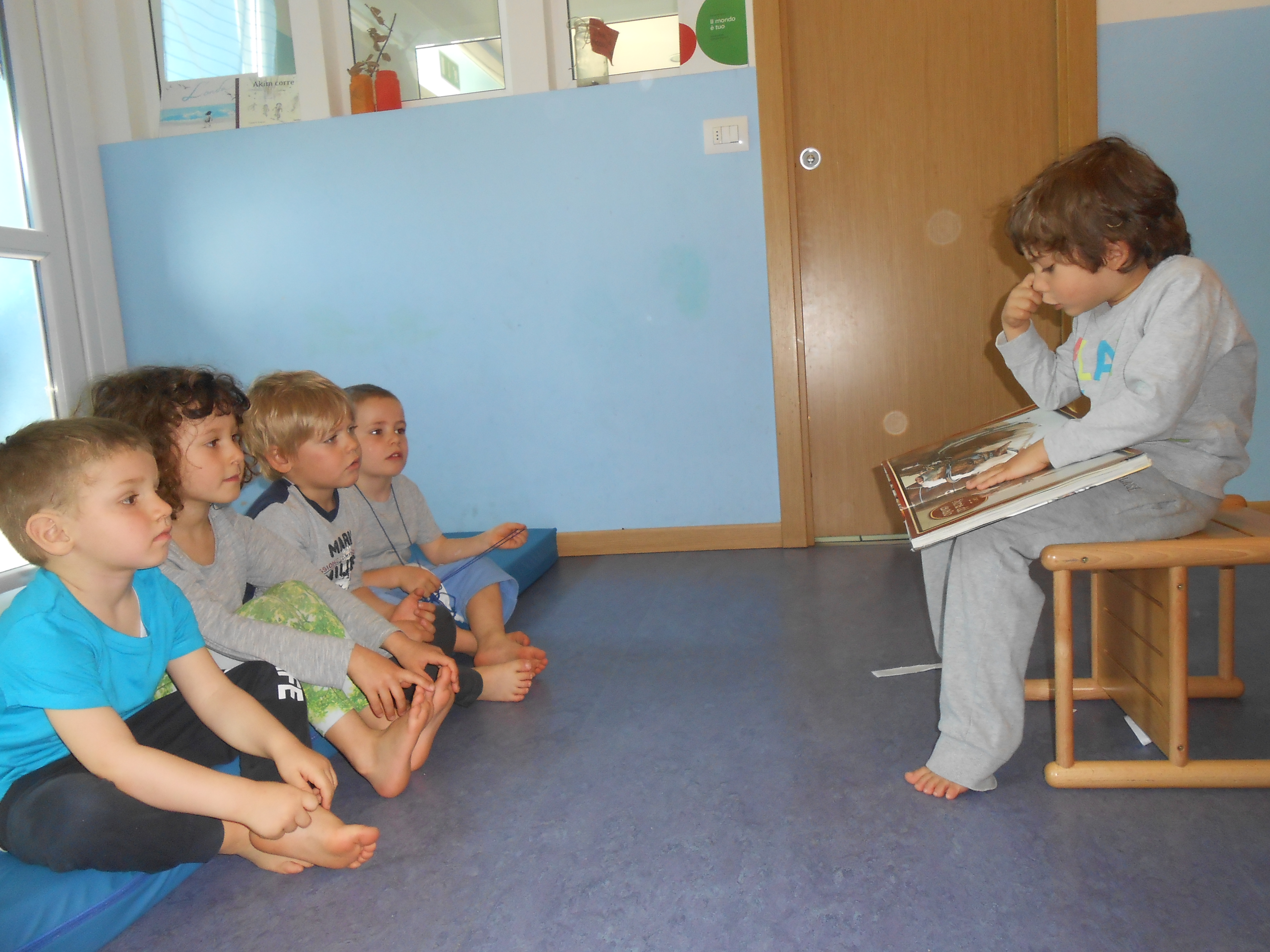 Ai bambini piacciono storie di bambini della loro età che narrano momenti di vita quotidiana (andare a scuola o al parco giochi), di amicizia, di fratelli o sorelle, ma anche libri fantastici, avventurosi. I testi devono essere semplici, o si possono semplificare, in modo da poter essere memorizzati, “letti autonomamente” , o in modo che il bambino possa concludere la frase iniziata dall’adulto. Le fiabe tradizionali e in particolare quelle “del perché” (ad esempio animali parlanti che spiegano le cose) aiutano anche a proiettare all’esterno le paure e le emozioni che il bambino ha dentro di sè. Al bambino piace scegliere la storia e gli piace anche farsela leggere molte volte… questo accade a casa in famiglia ma anche qui al Nido.