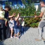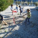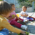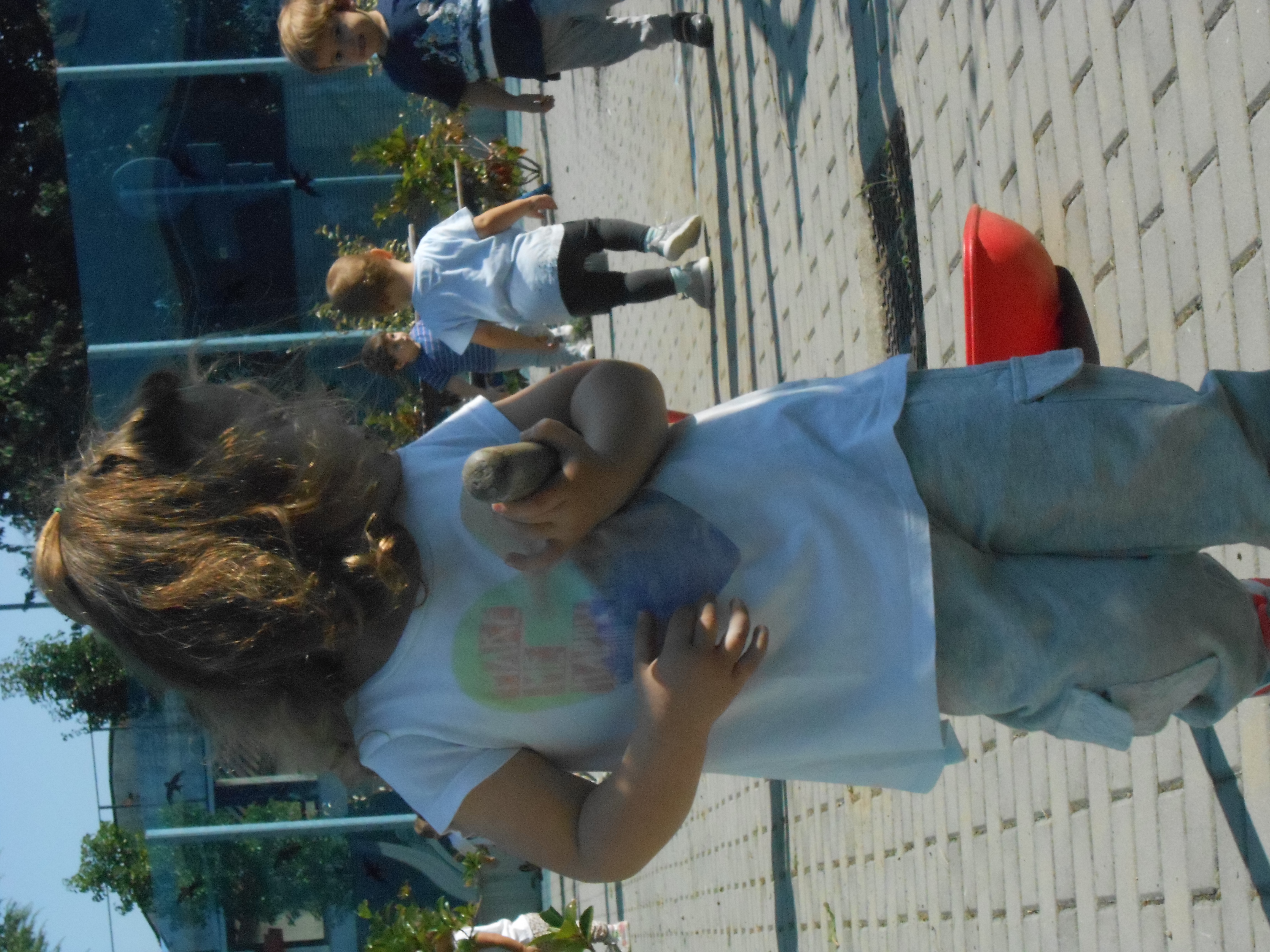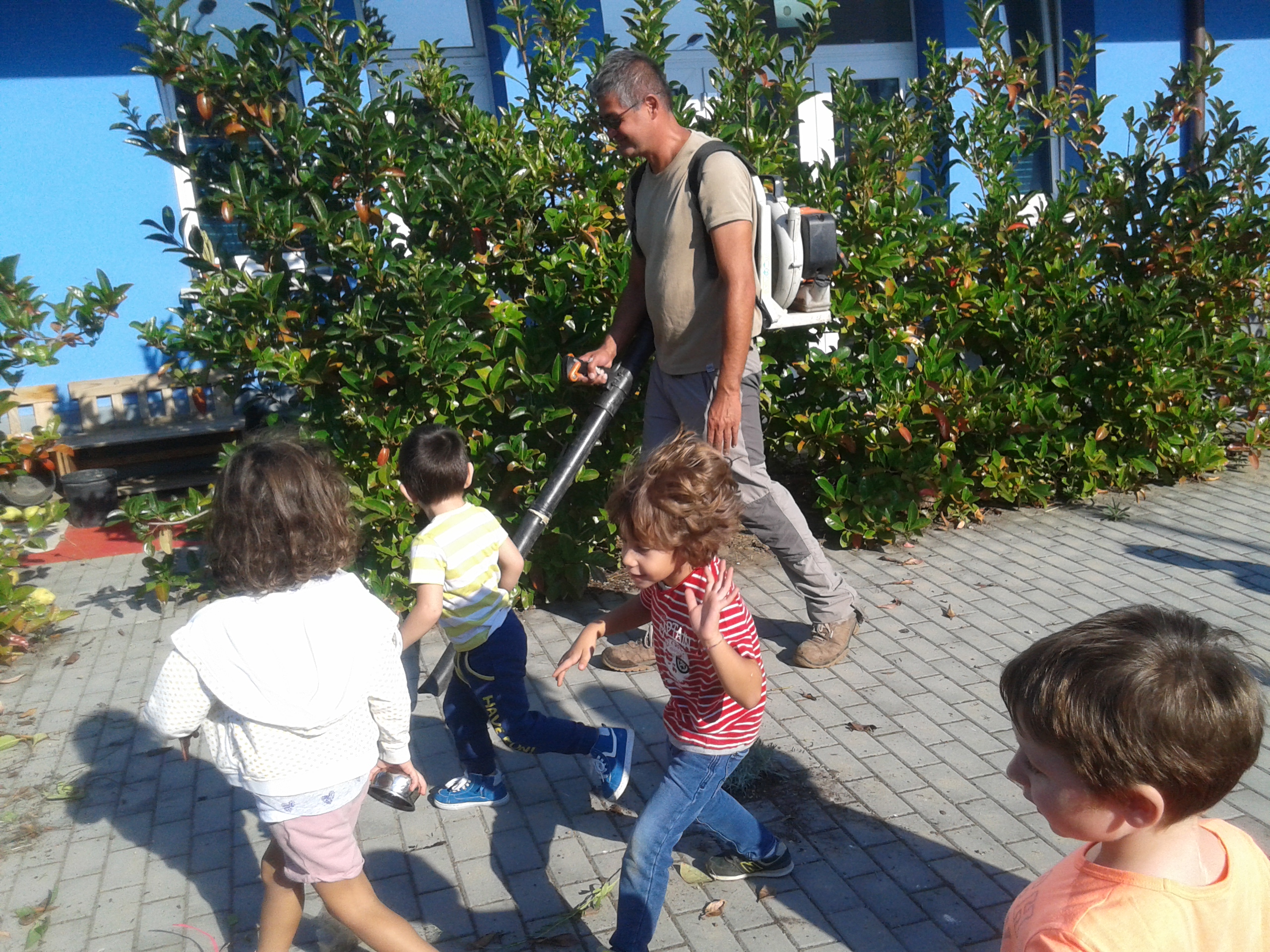 oggi è arrivato il dado Paolo e come sempre i bimbi gli corrono inconro, lo chiamano, i grandi ormai lo conoscono bene e sono entusiasti di poter partecipare ai lavori dle giardino!