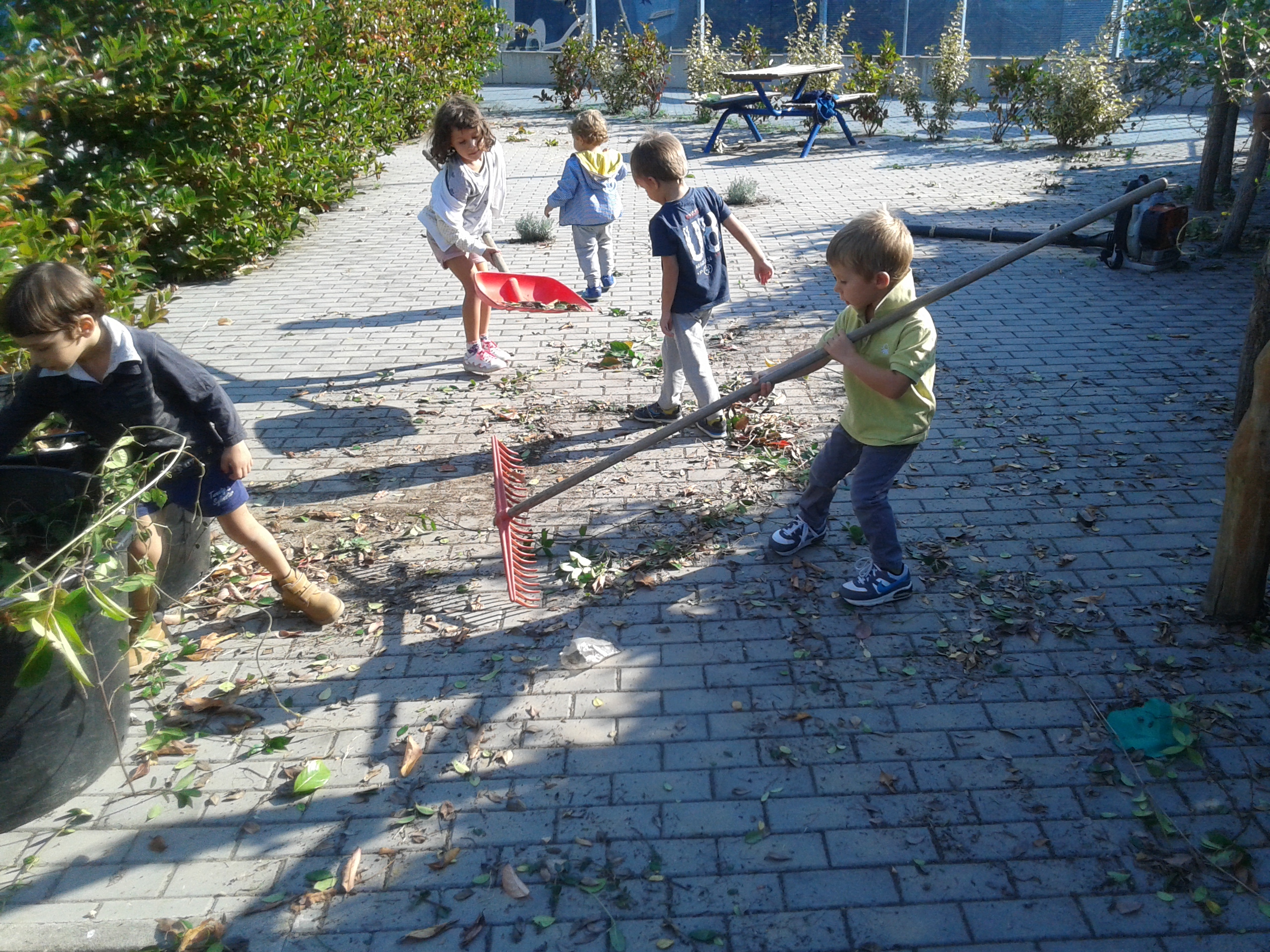 E poi ci sono i rami da tagliare, c’è l’erba da raccogliere e mettere in un enorme contenitore.