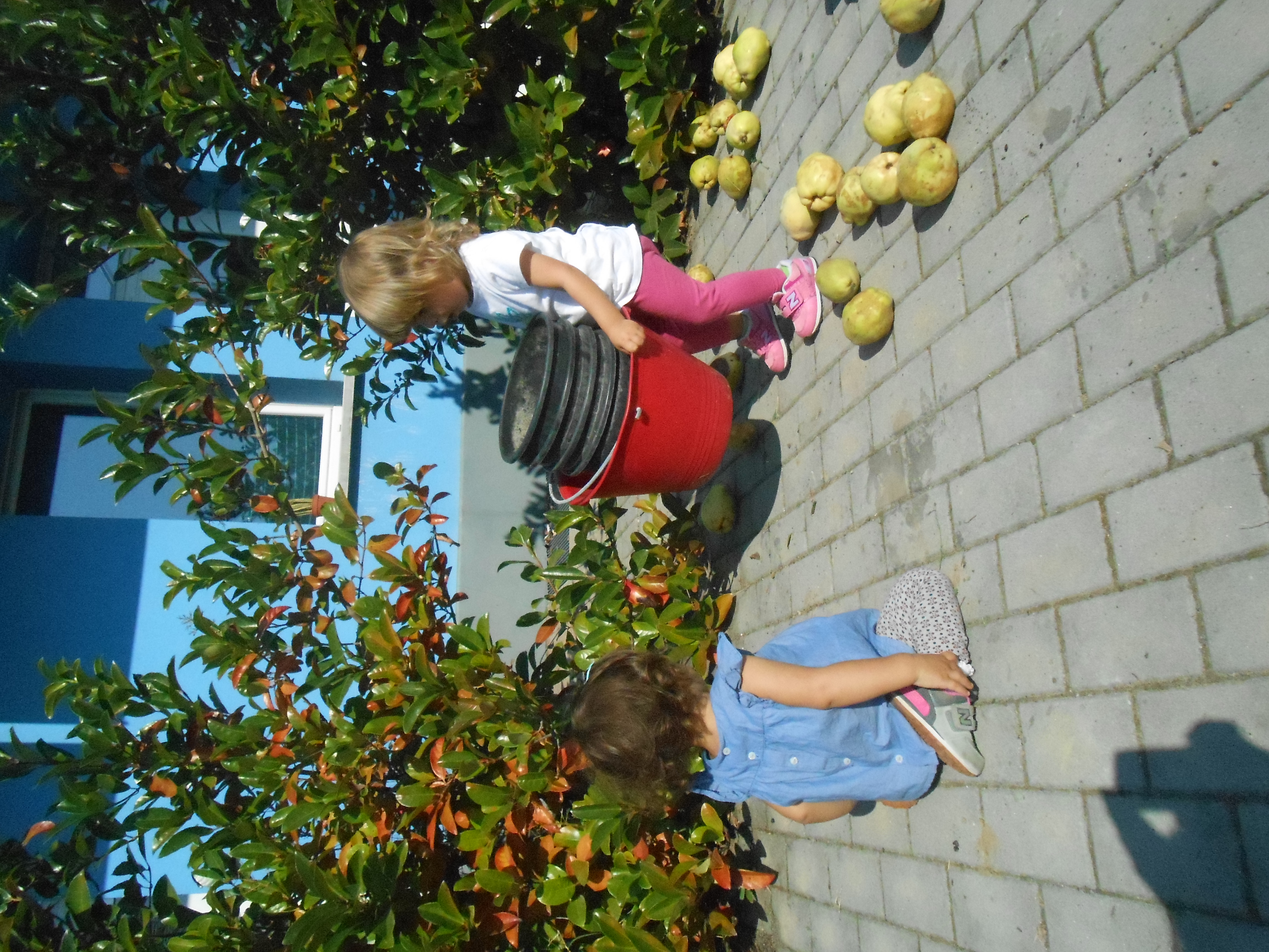 e poi le pere cotogne! Il nostro piccolo albero ha dato tantissimi frutti, possiamo dividerli in vasi, lanciarli, farli rotolare o magari assaggiarli.