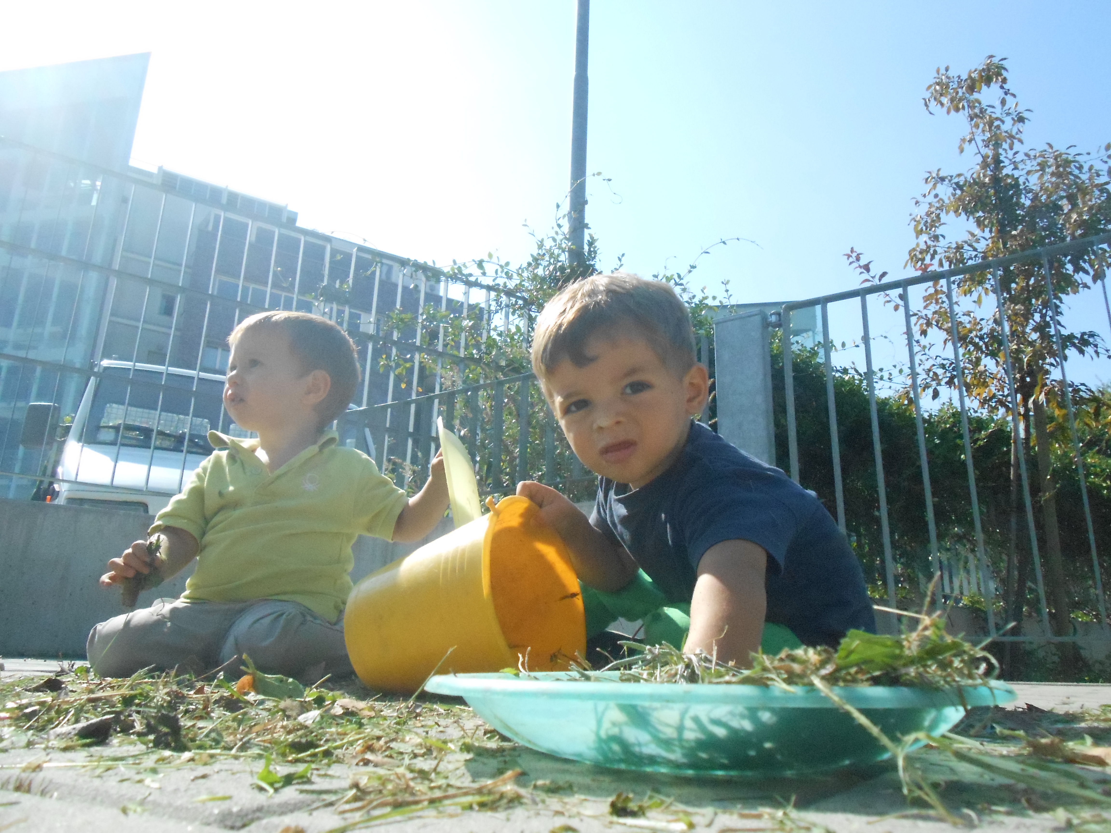 Ci sono le pozze piene di fango in cui paciugaree, la nostra fontana è aggiustata e c’è acqua per riempire i secchielli, qualche piatto un po’ d’erba e il gioco è pronto!