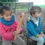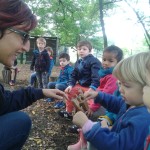 una esplorazione al bosco magico, fatto di rami caduti su cui arrampicarsi ed ecco che è arrivato il pranzo, ci sistemiamo in una delle casette di mattoni a gustare i panini e i succhi di frutta e aspettiamo cantanto che torniano mamma, papà o i nonni.