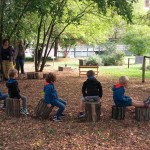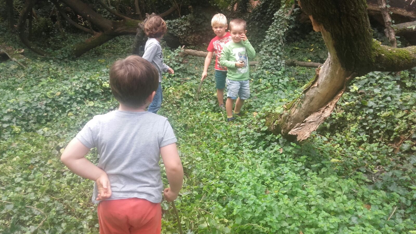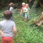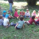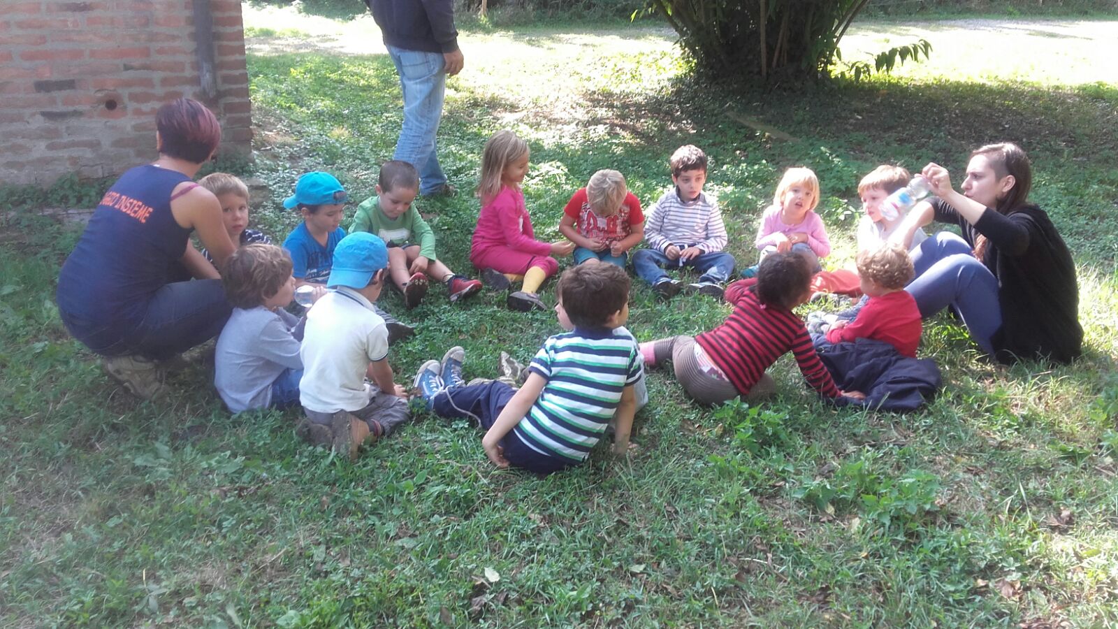 una esplorazione al bosco magico, fatto di rami caduti su cui arrampicarsi ed ecco che è arrivato il pranzo, ci sistemiamo in una delle casette di mattoni a gustare i panini e i succhi di frutta e aspettiamo cantanto che torniano mamma, papà o i nonni.