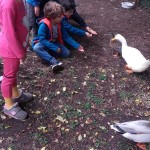 Ecco che la pioggia ci coglie sotto ad un grosso albero che con la sua chiama ci protegge. Possiamo ascoltare il rumore che fa sulle foglie, quando cadono nel laghetto e osservare germani e cigni che nuotano pacifici.