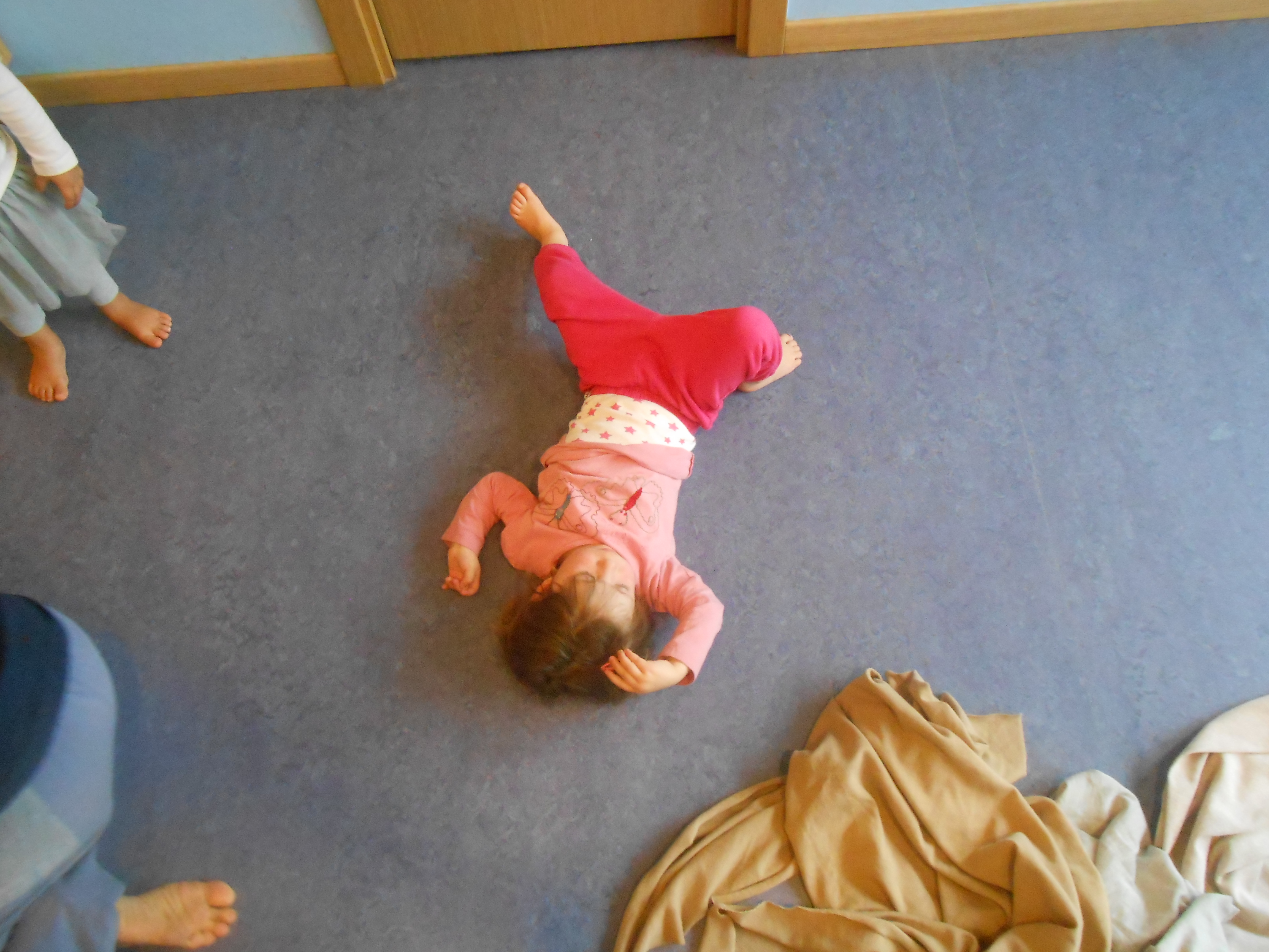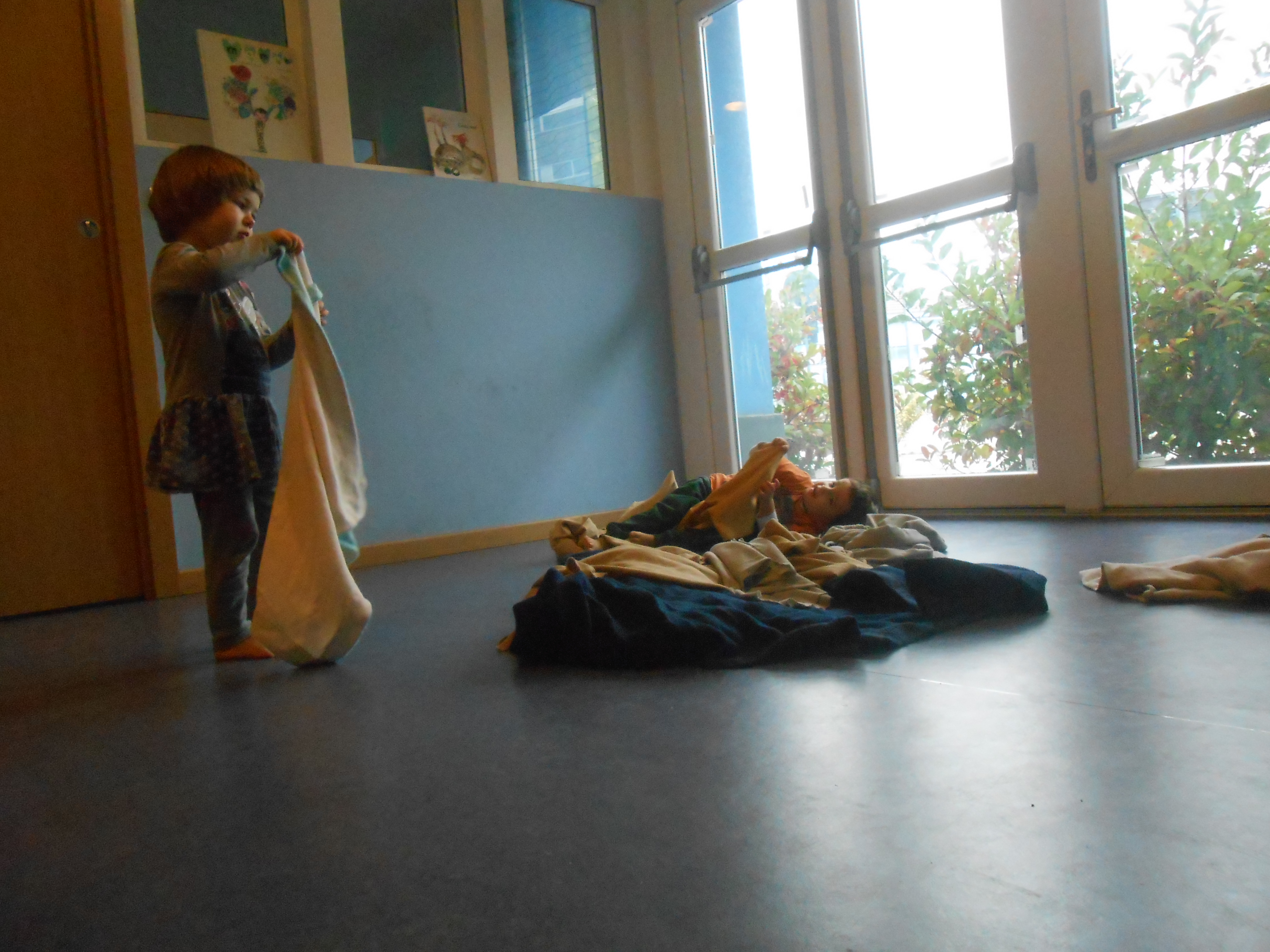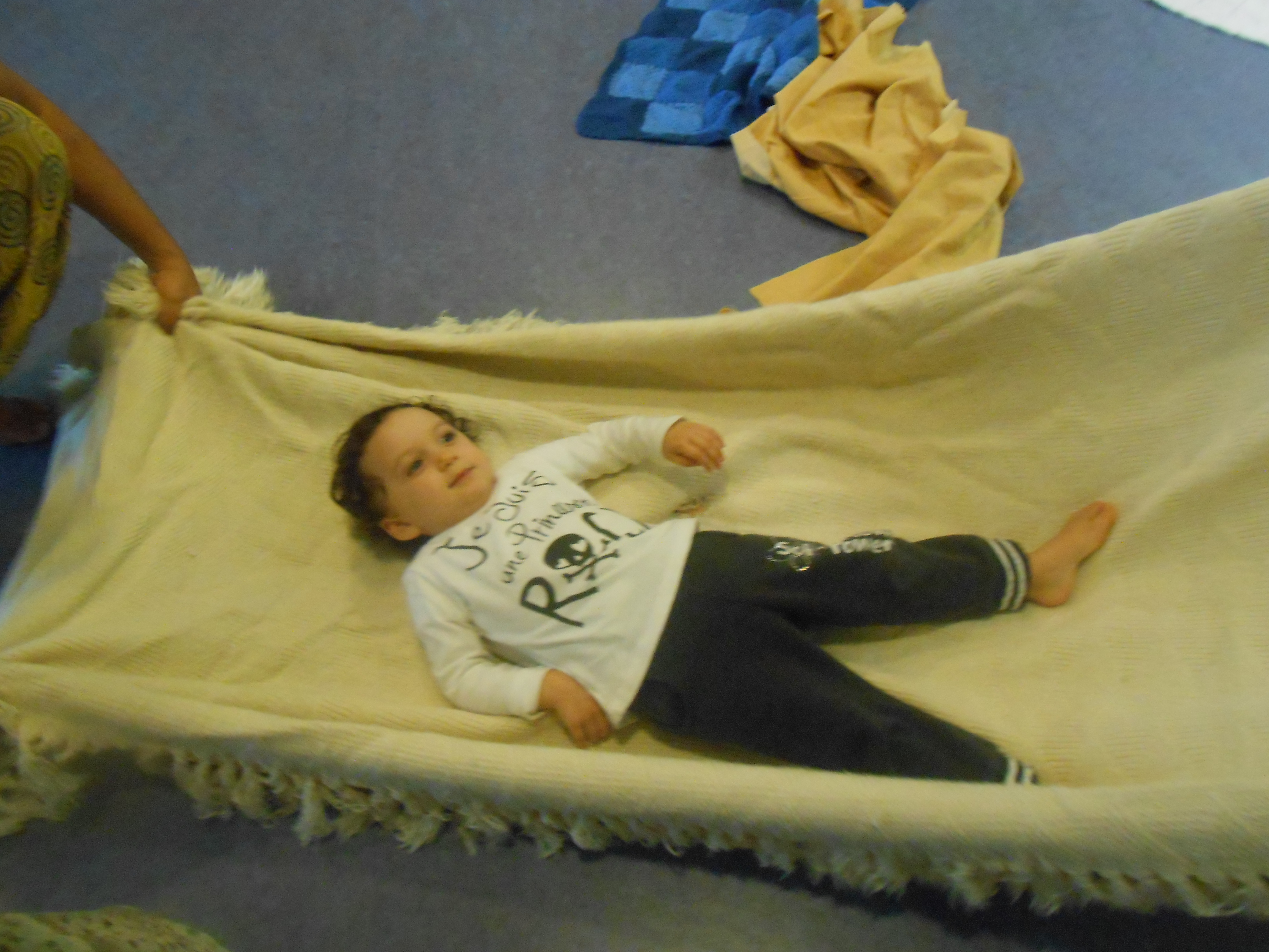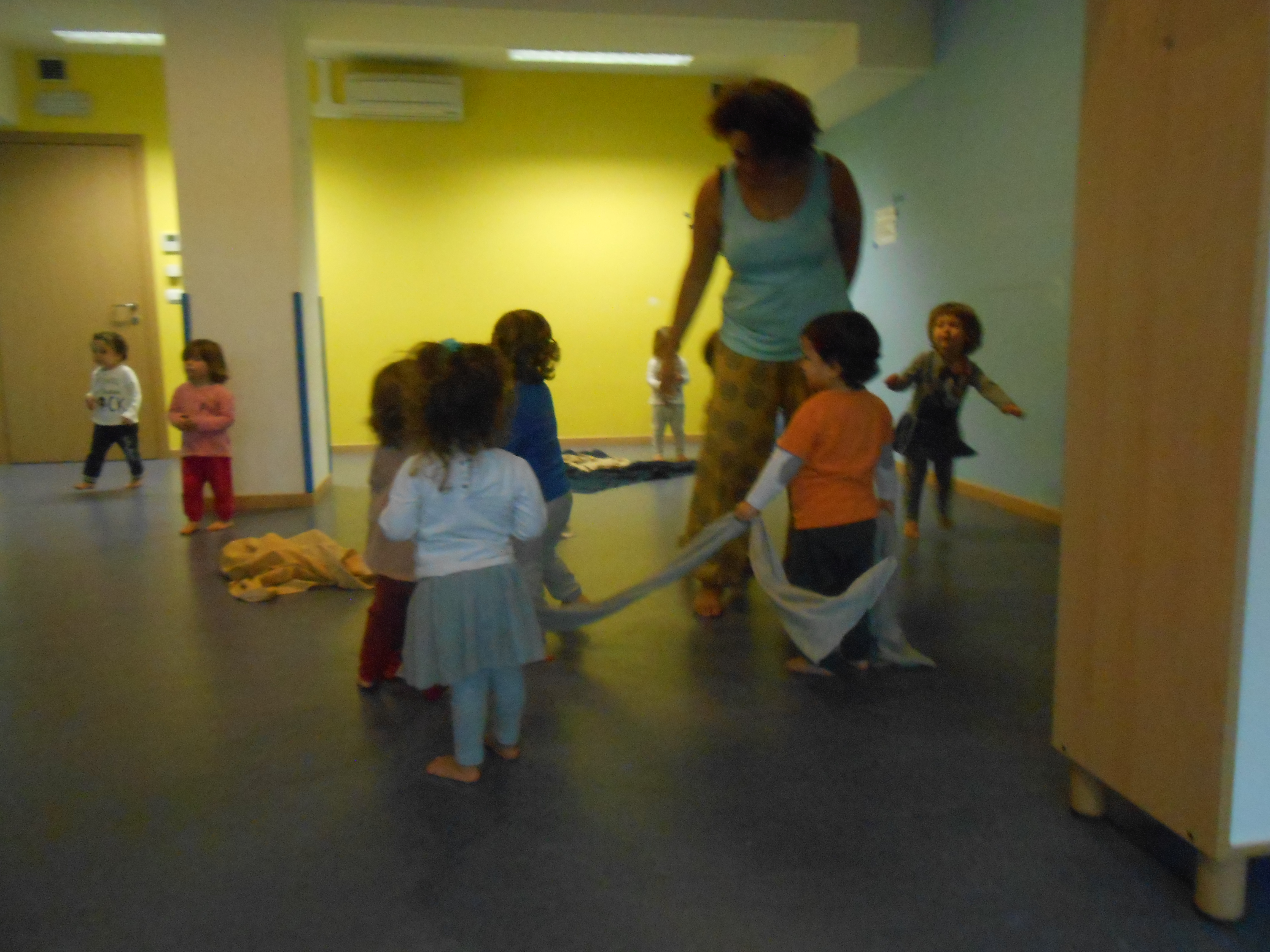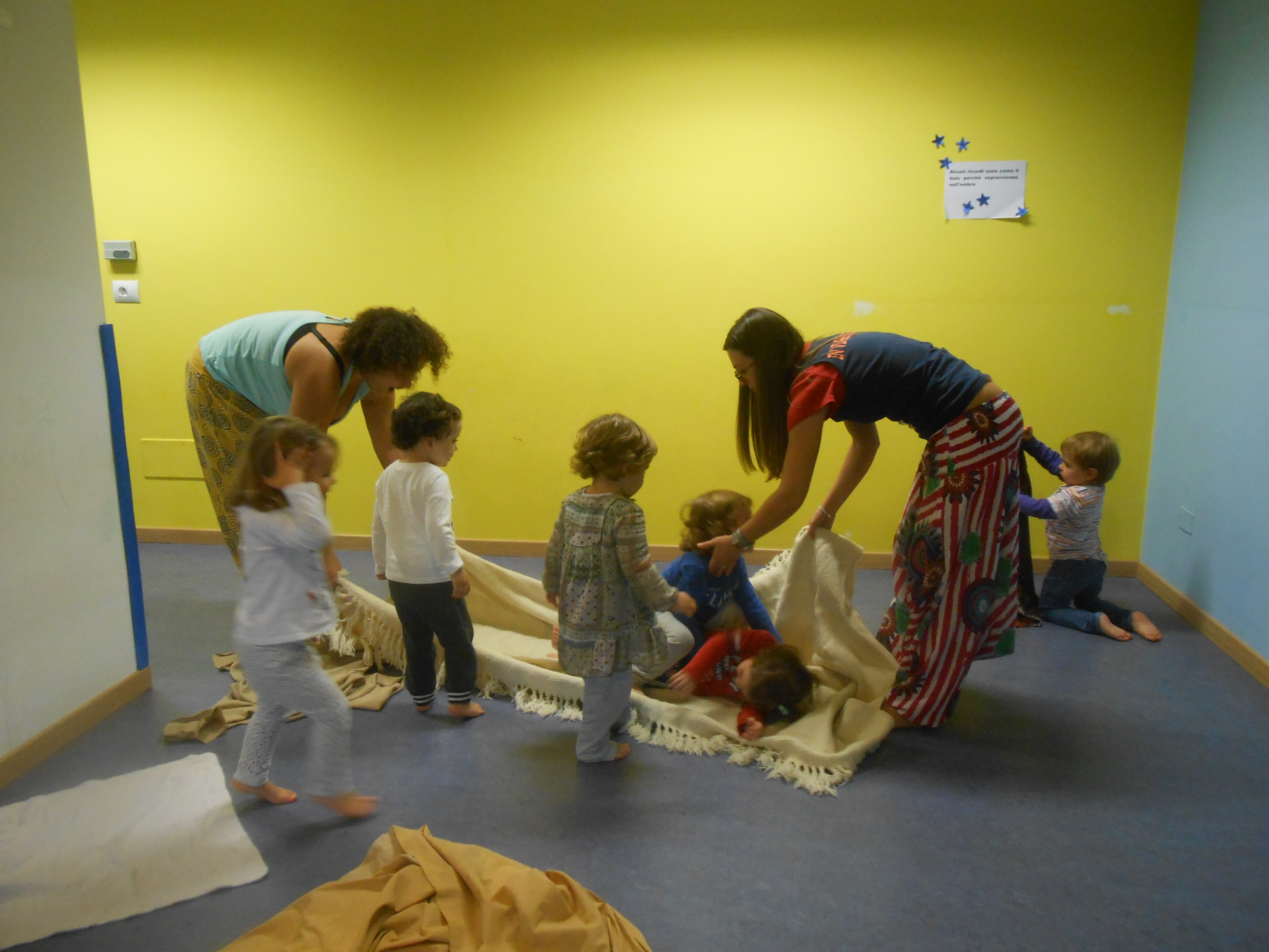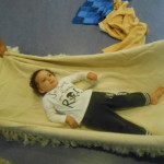 Quest’anno è la prima volta per me e solo la terza per i bimbi. Ci siamo confrontate con la dada Francesca, lei ha preparato delle musiche “leggere” e gioiose e poi abbiamo proposto tessuti caldi e morbidi perchè la musica potesse accompagnare il loro stato d’animo creando intimità e tenerezza.