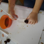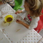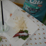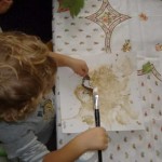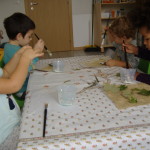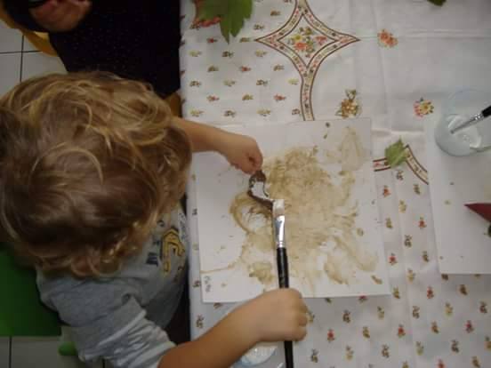 Siamo partiti dalla terra, dalla nostra terra che unita all’acqua ci ha permesso di dipingere, di disegnare, di colorare su fogli di cartoncino bianco che ognuno aveva per sé.