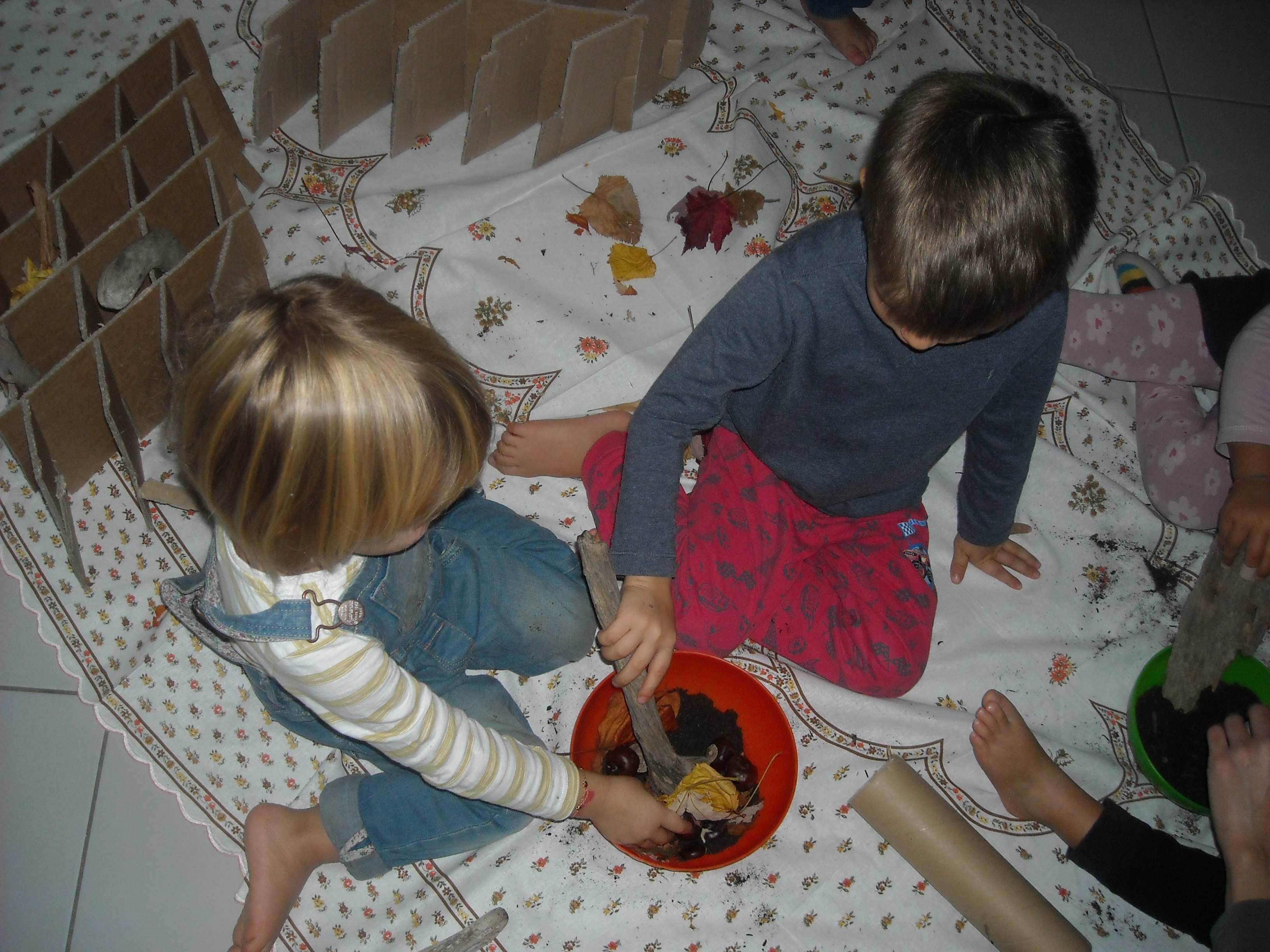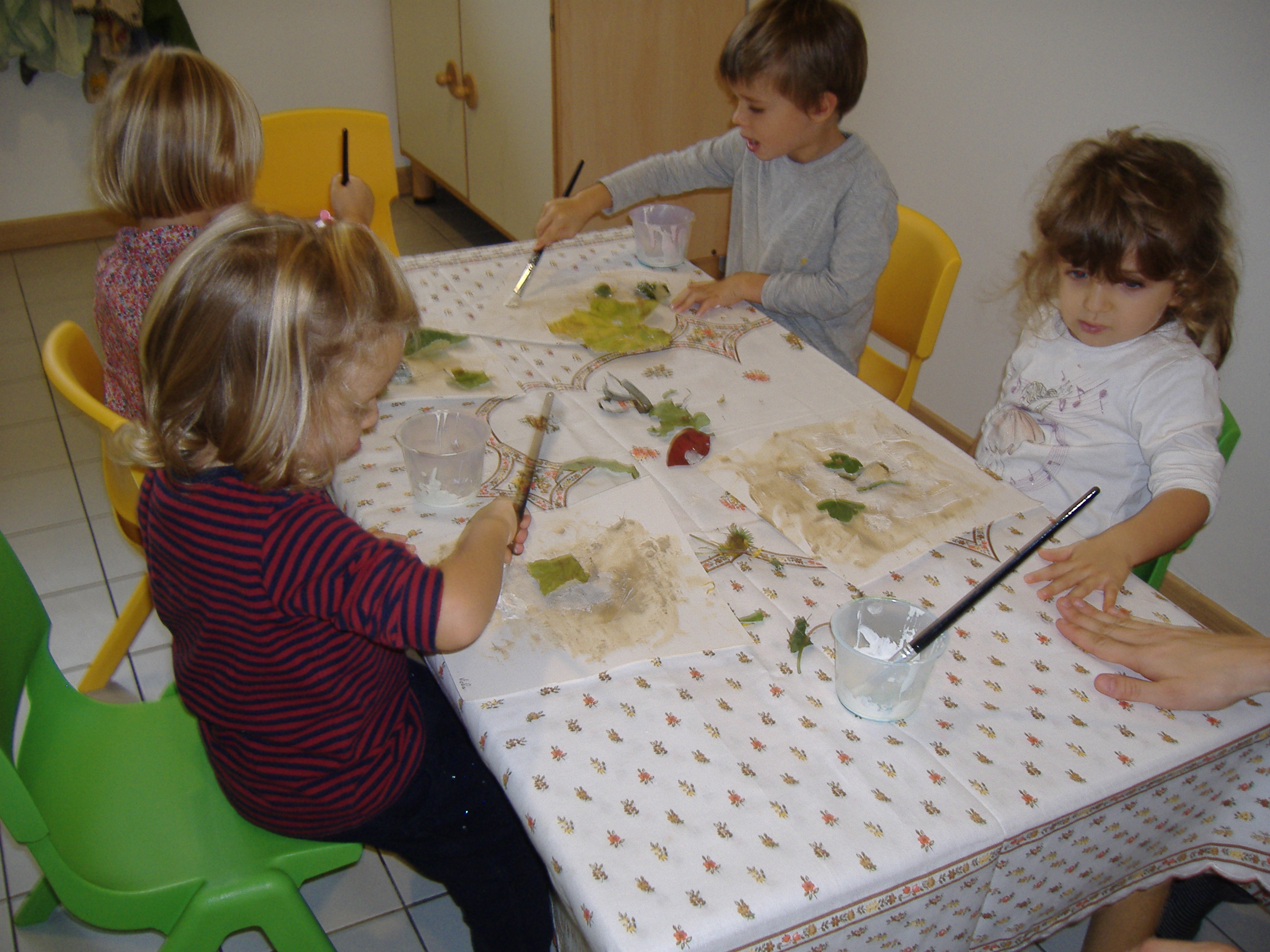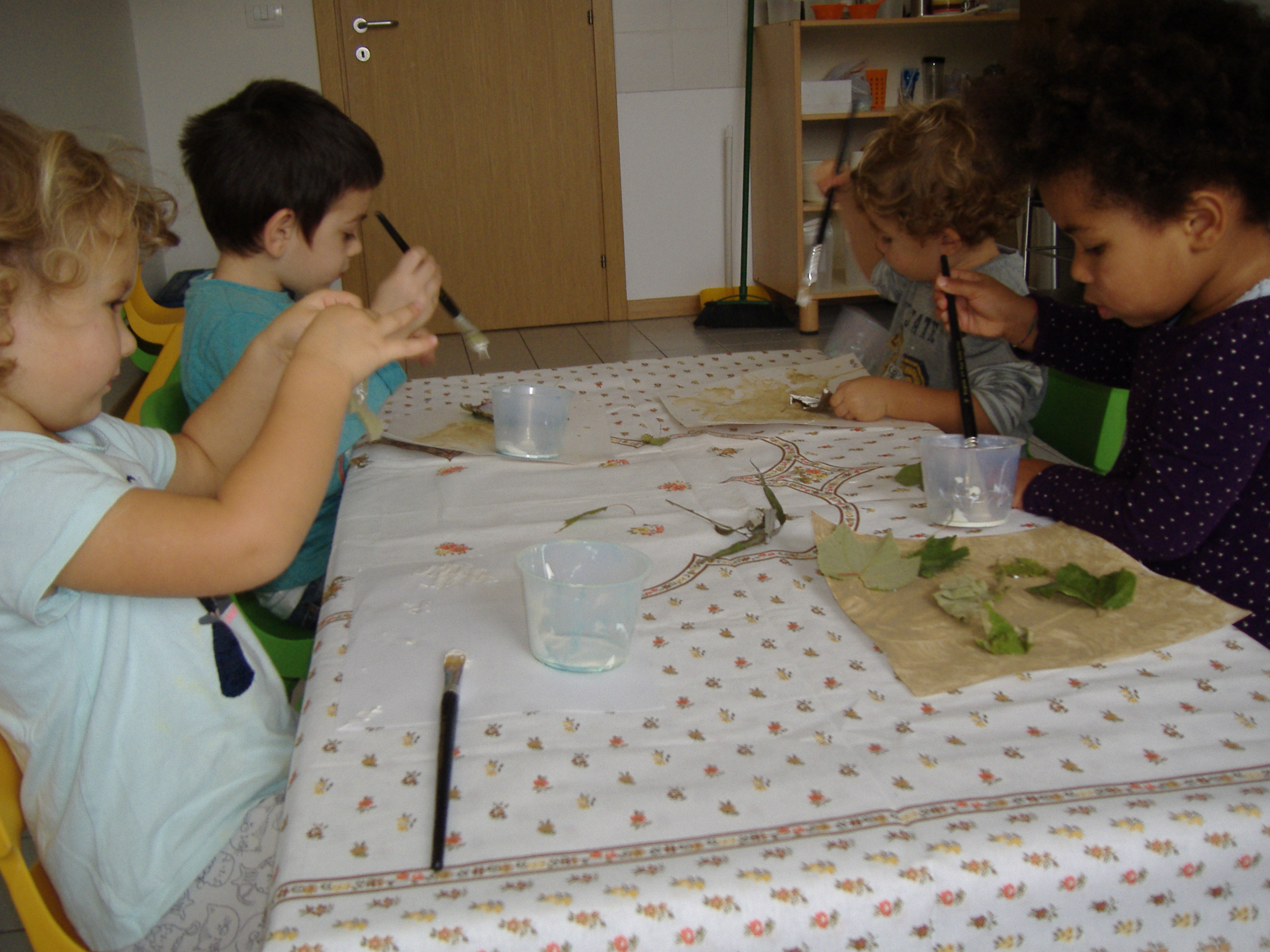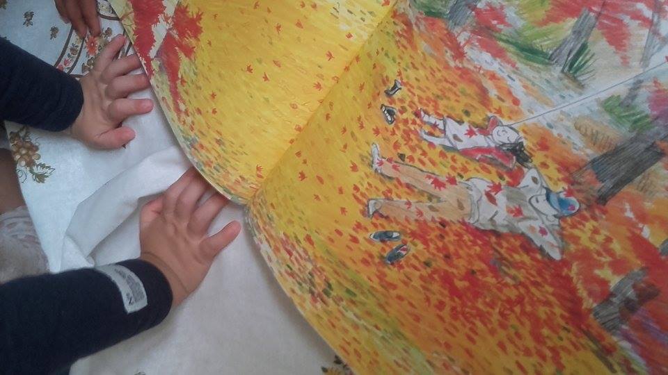 Se un gruppo di bimbi con la dada Marta creava meravigliosi Alberi dell’Autunno,  come testimonianza del vissuto della gita all’Oasi dei Saperi di qualche settimana fa, gli altri bimbi della Materna creavano un libricino sensoriale.