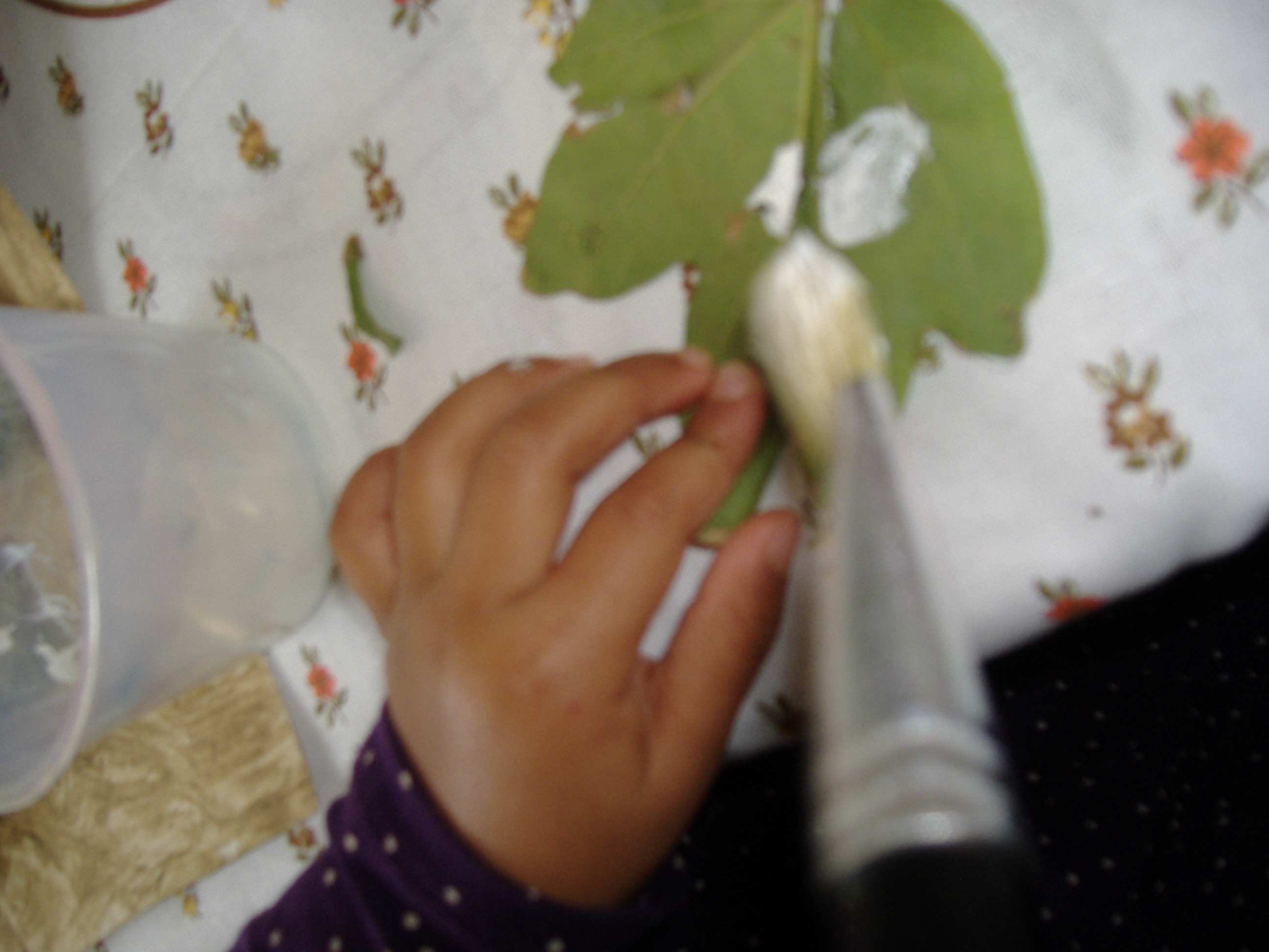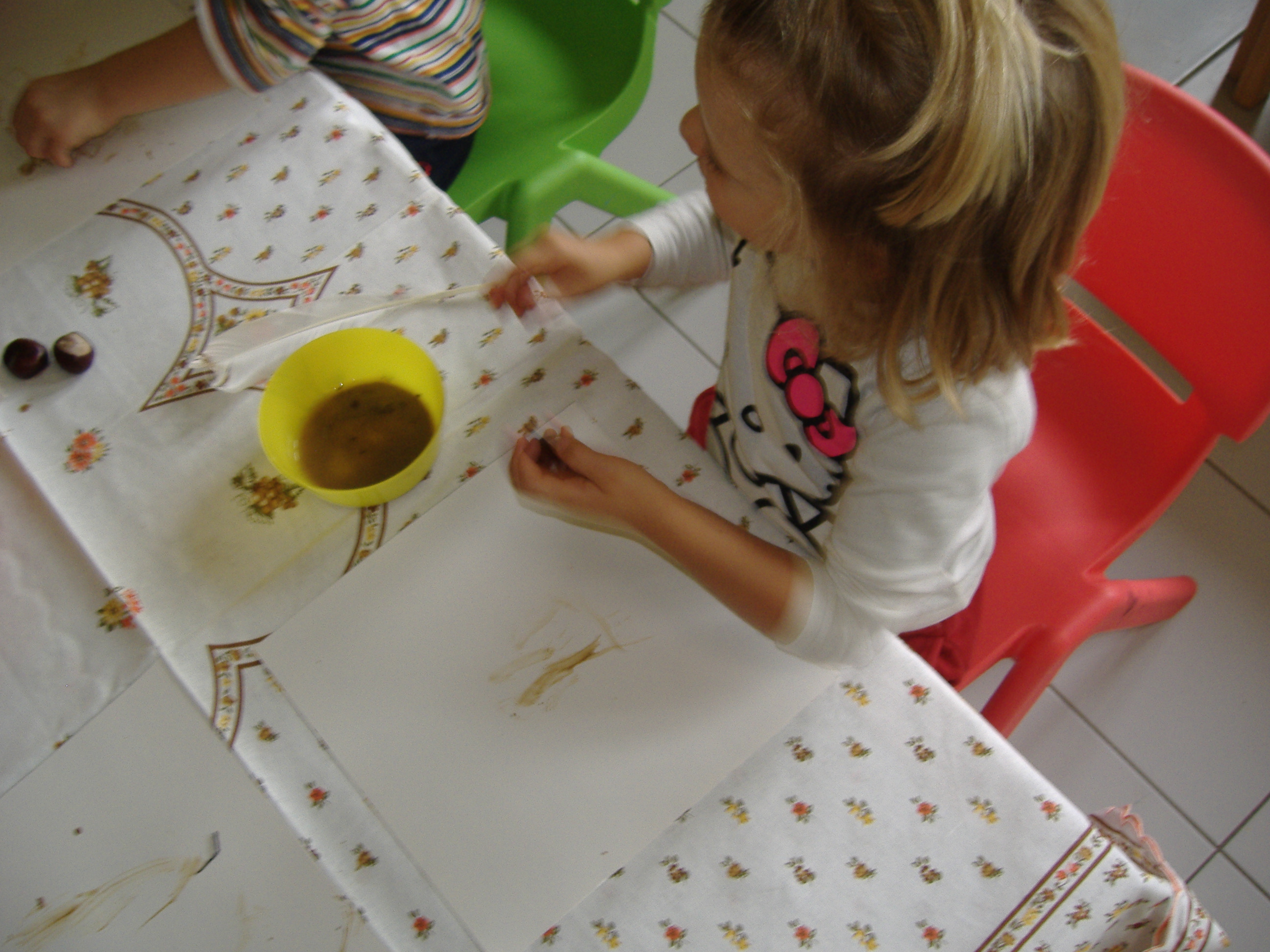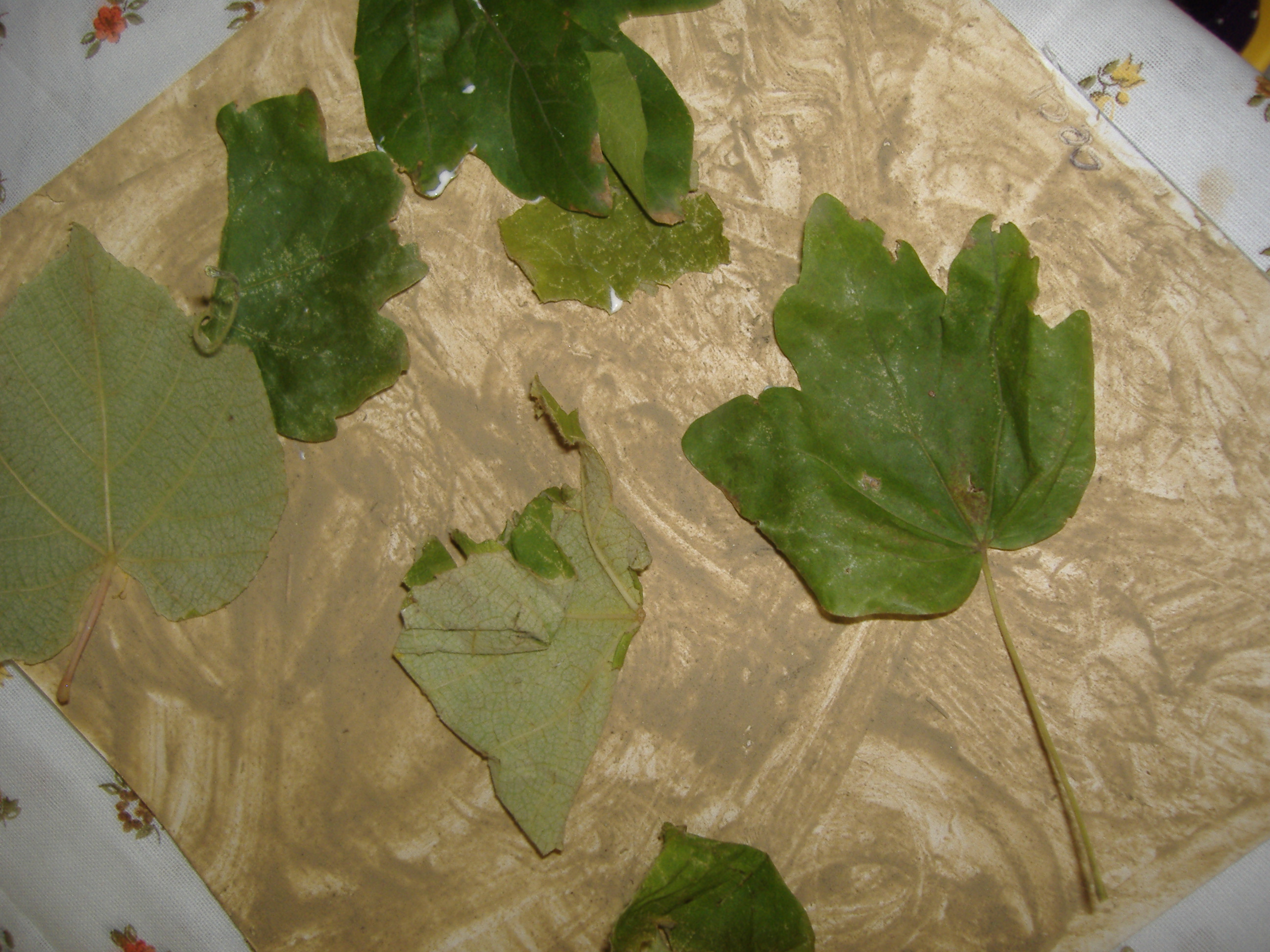 Una volta asciugato il foglio abbiamo deciso di lasciar traccia materica, fisica, incollando foglie grandi e piccole, fiori, fili d’erba che avevamo precedentemente raccolto nel nostro giardino.