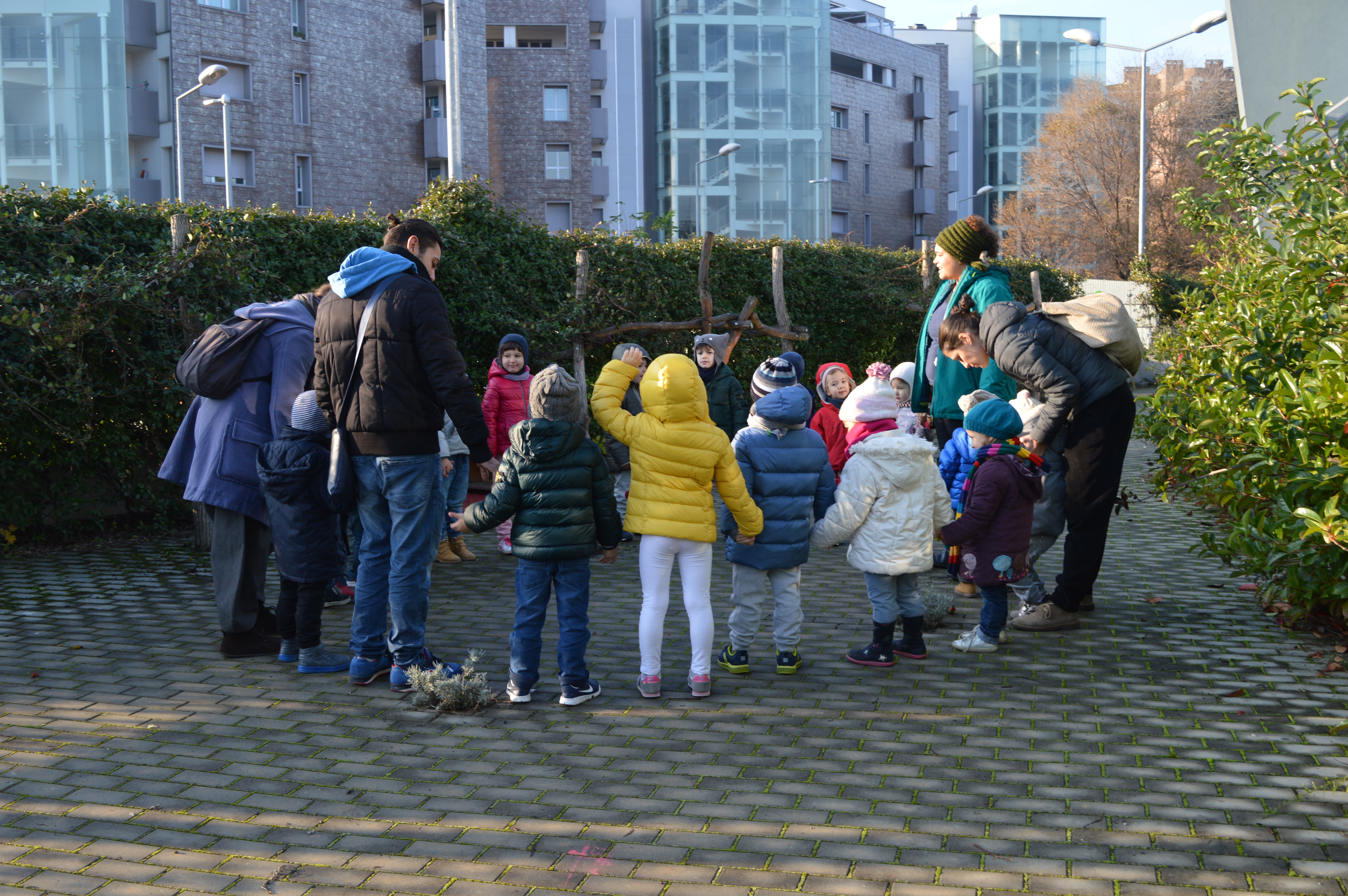 Aspettiamo l’autobus e poi di nuovo le scale, la cintura e in pochi minuti stiamo alla materna, in collina a fare la merenda!!!