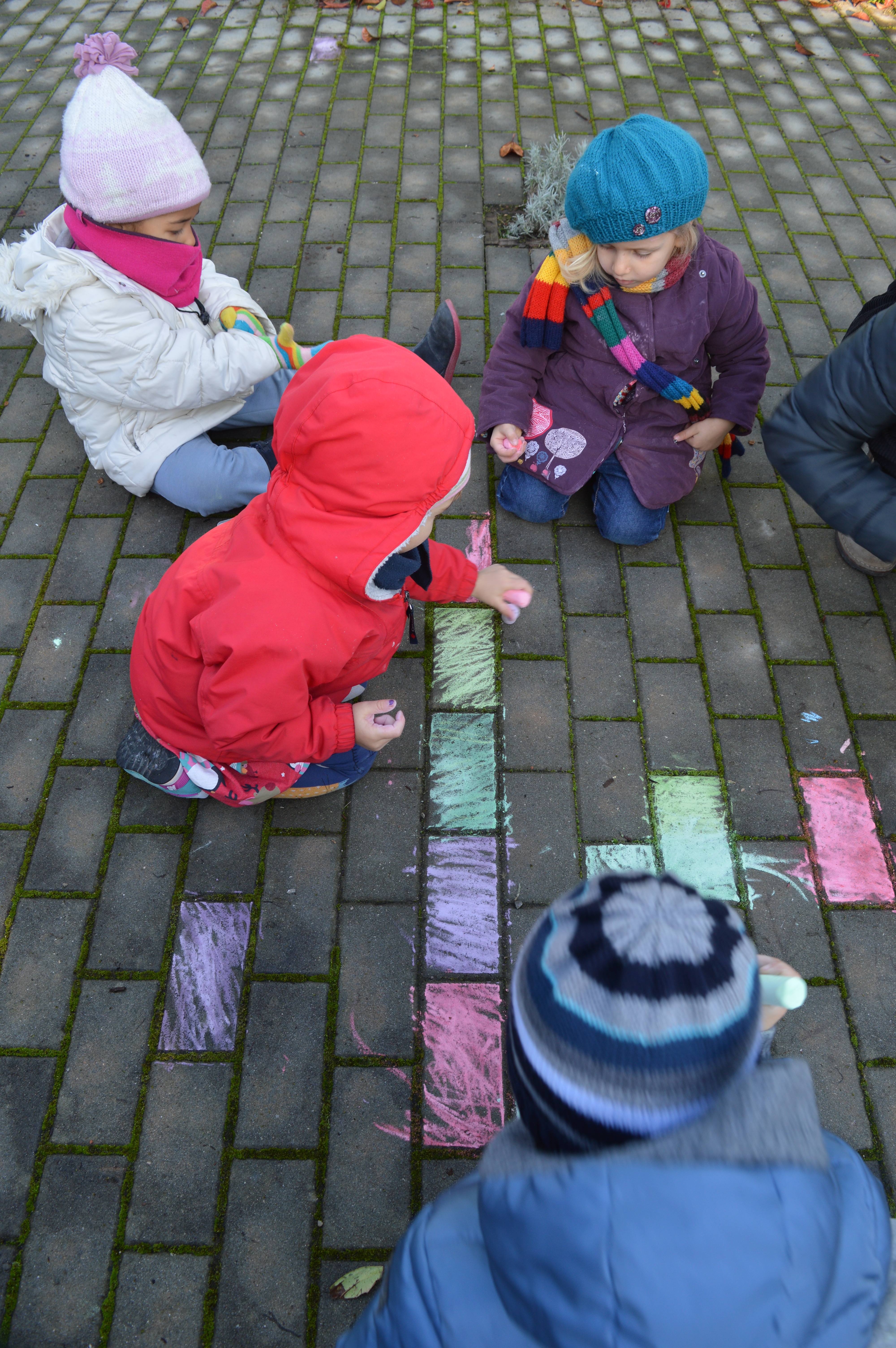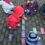 E mentre lo aspettiamo nel cortile per passarci il tempo coloriamo con i gessetti. L’autobus è in ritardo… strano!
