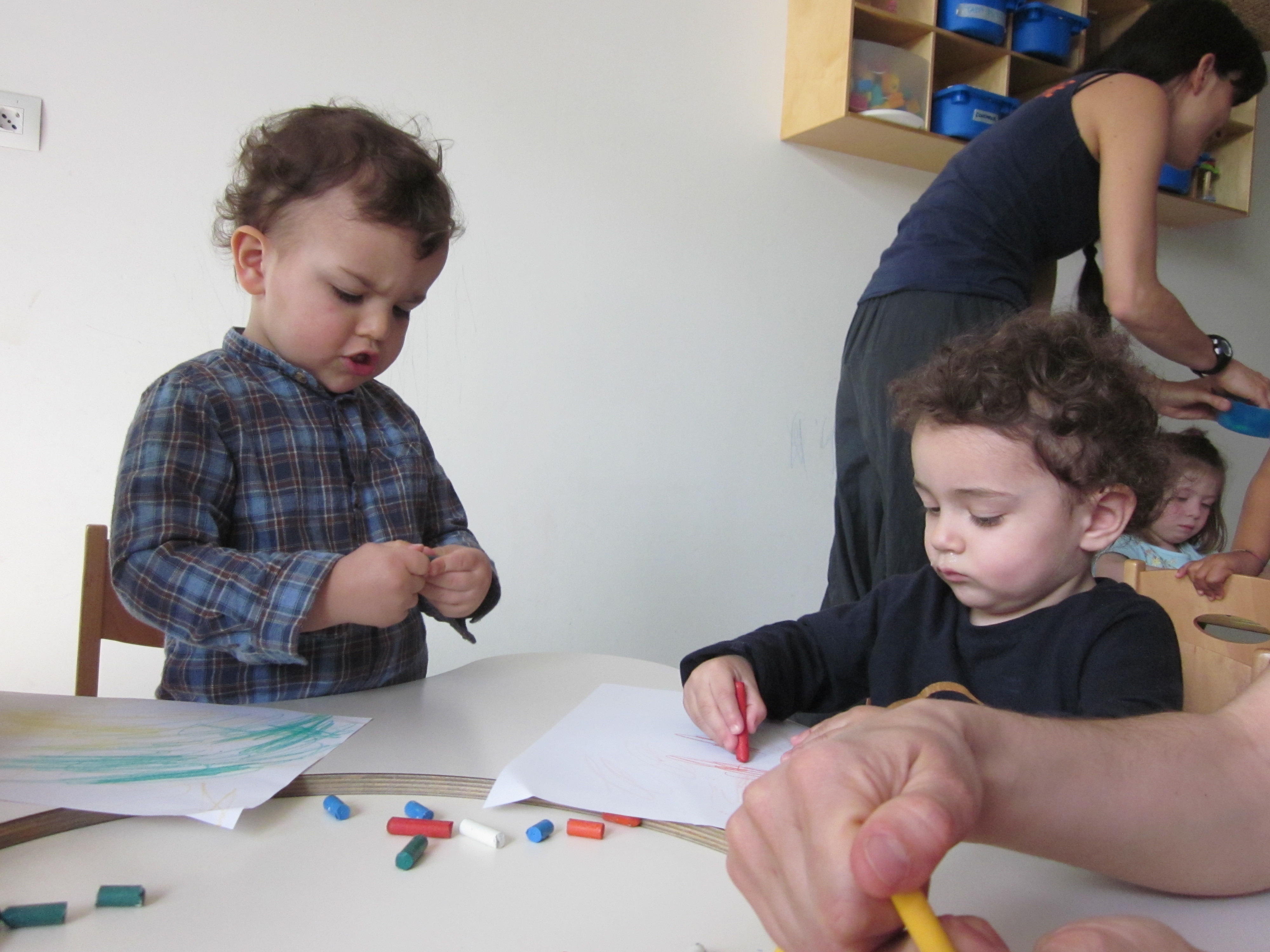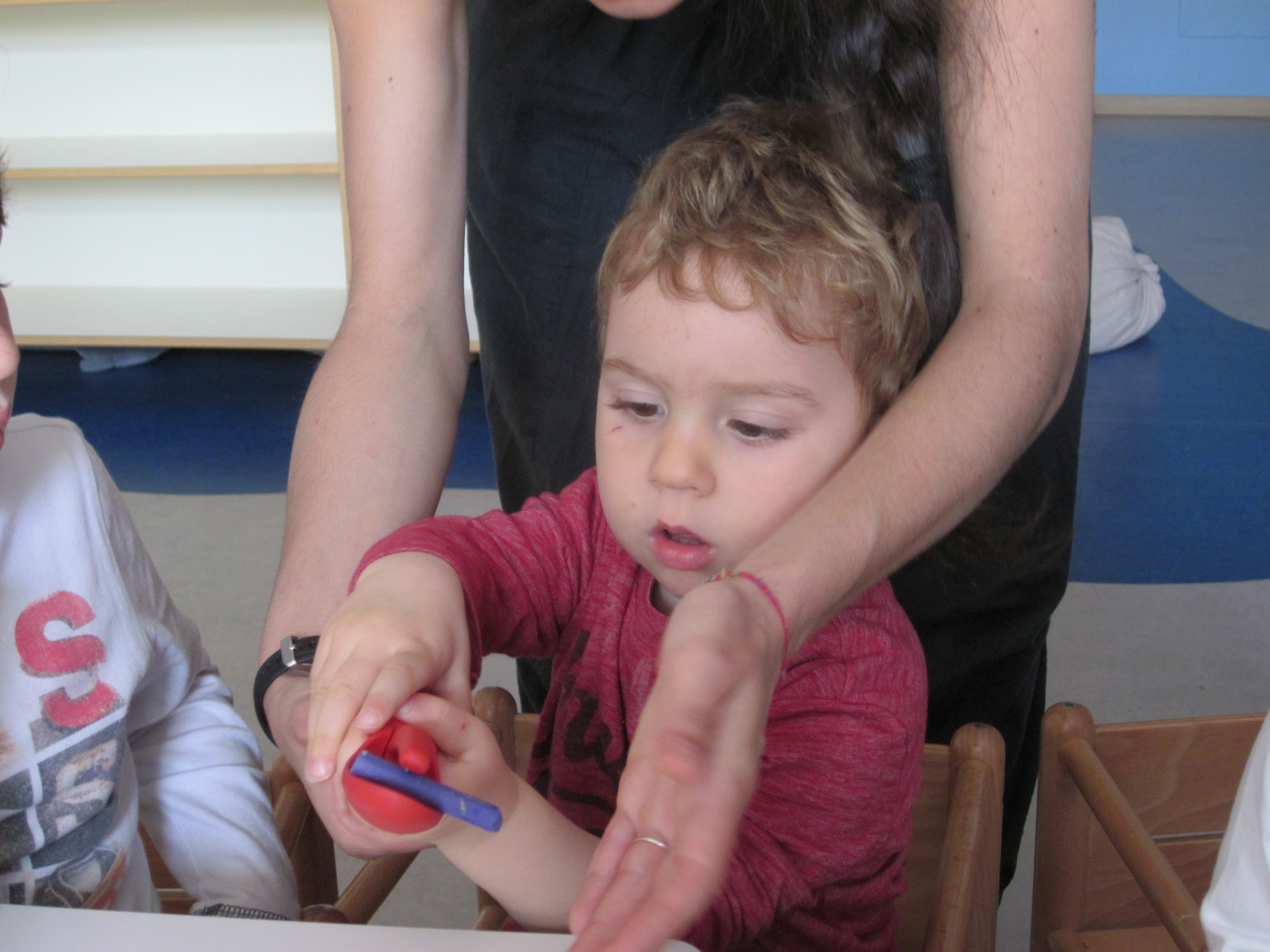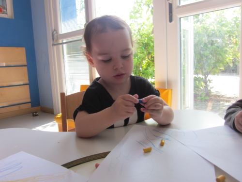 I pastelli a cera, per moltitudine di forme e colori, incarnano perfettamente la lettura fatta. Grandi e piccoli si trovano quindi insieme a scegliere i colori che più li attirano e che meglio rappresentano sé stessi, mamma, papà, nonni e fratelli. Con il magico gioco dei travasi, riempiamo gli stampini da cucina con i pastelli spezzettati e scelti. In ogni stampino c’è uno di loro.