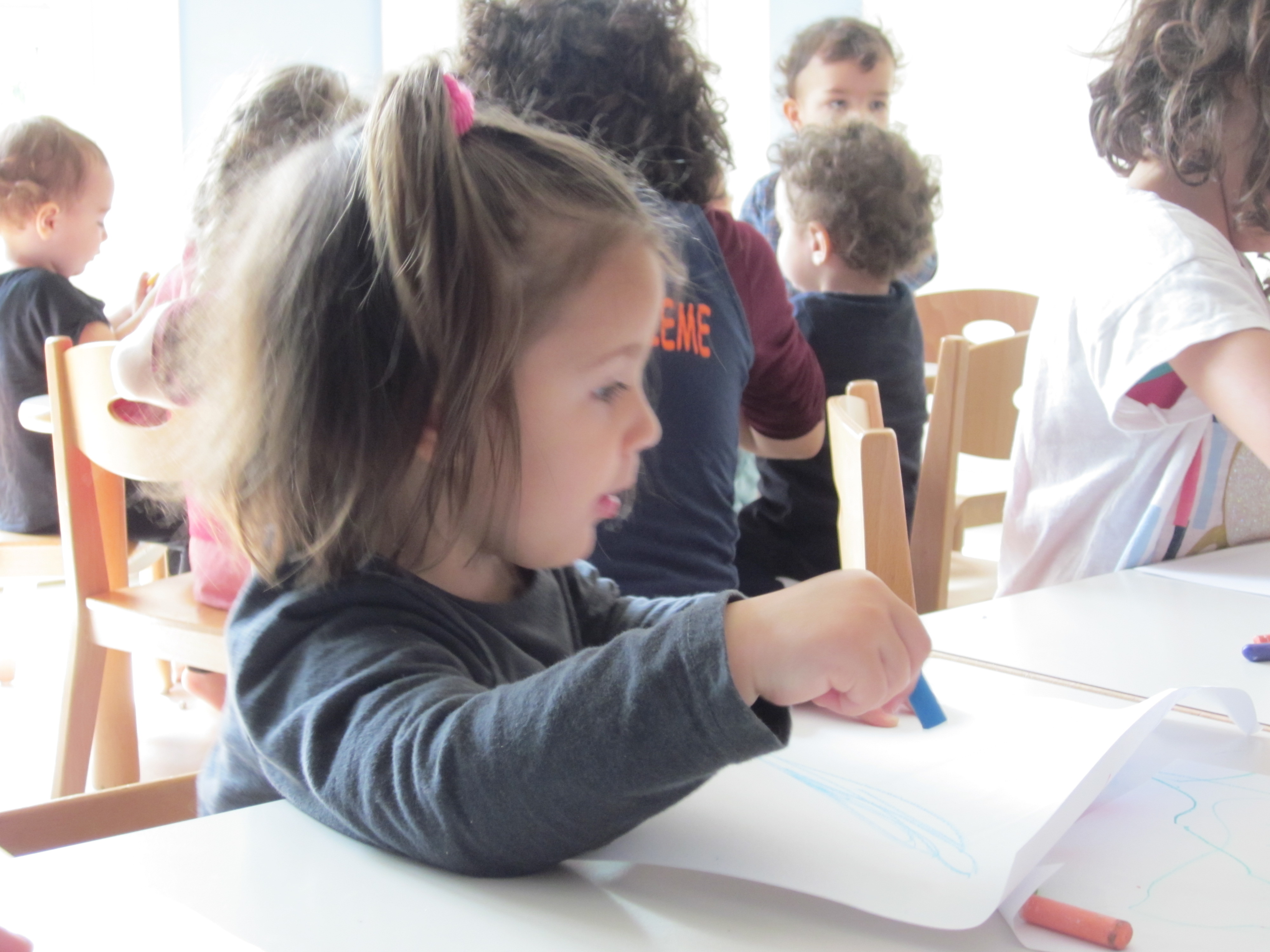 Andiamo tutti in cucina, un altro luogo che ci ha spinti a vivere insieme momenti di sorpresa e di scoperta. Inforniamo i nostri pezzettini di cera: quanto stupore nel vedere come si trasformano una volta dentro; iniziano piano piano a sciogliersi, le cere perdono la loro forma, i colori si fondono tra di loro.