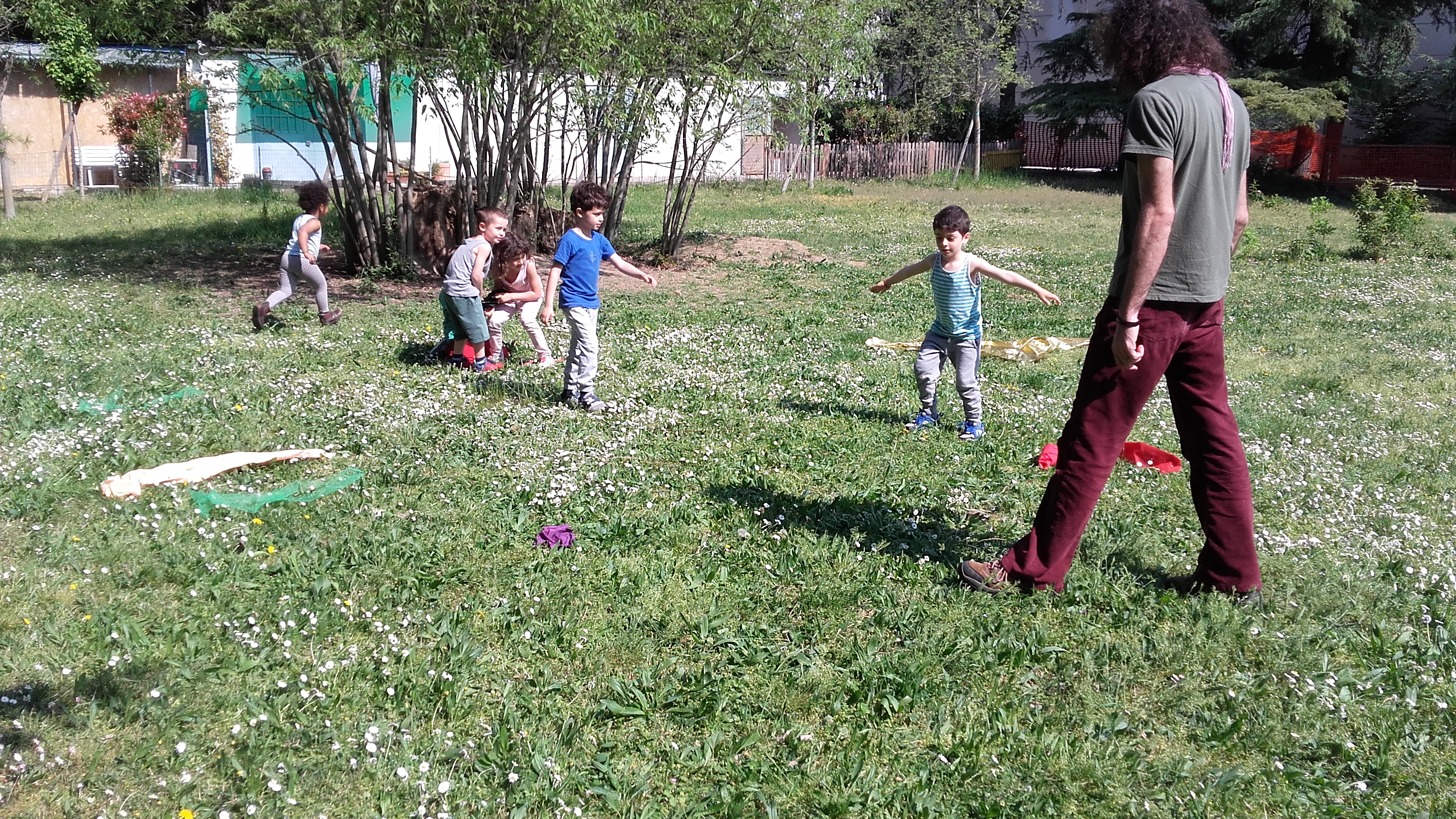 Trasmettere qualcosa di nuovo richiede entusiasmo e sicurezza soprattutto quando si parla di piccoli esseri umani . Me ne accorgo in particolar modo durante il gioco di “The witch is calling the color”, la versione inglese di “strega comanda colori”, dove i piccoli sono chiamati a svolgere l’attività interamente in lingua straniera, dal “comando della strega” al riconoscere i nomi dei colori dei teli che sono sparsi nella stanza: “Che colore è il red?”…. “Come si dice azzuro in inglese?”.