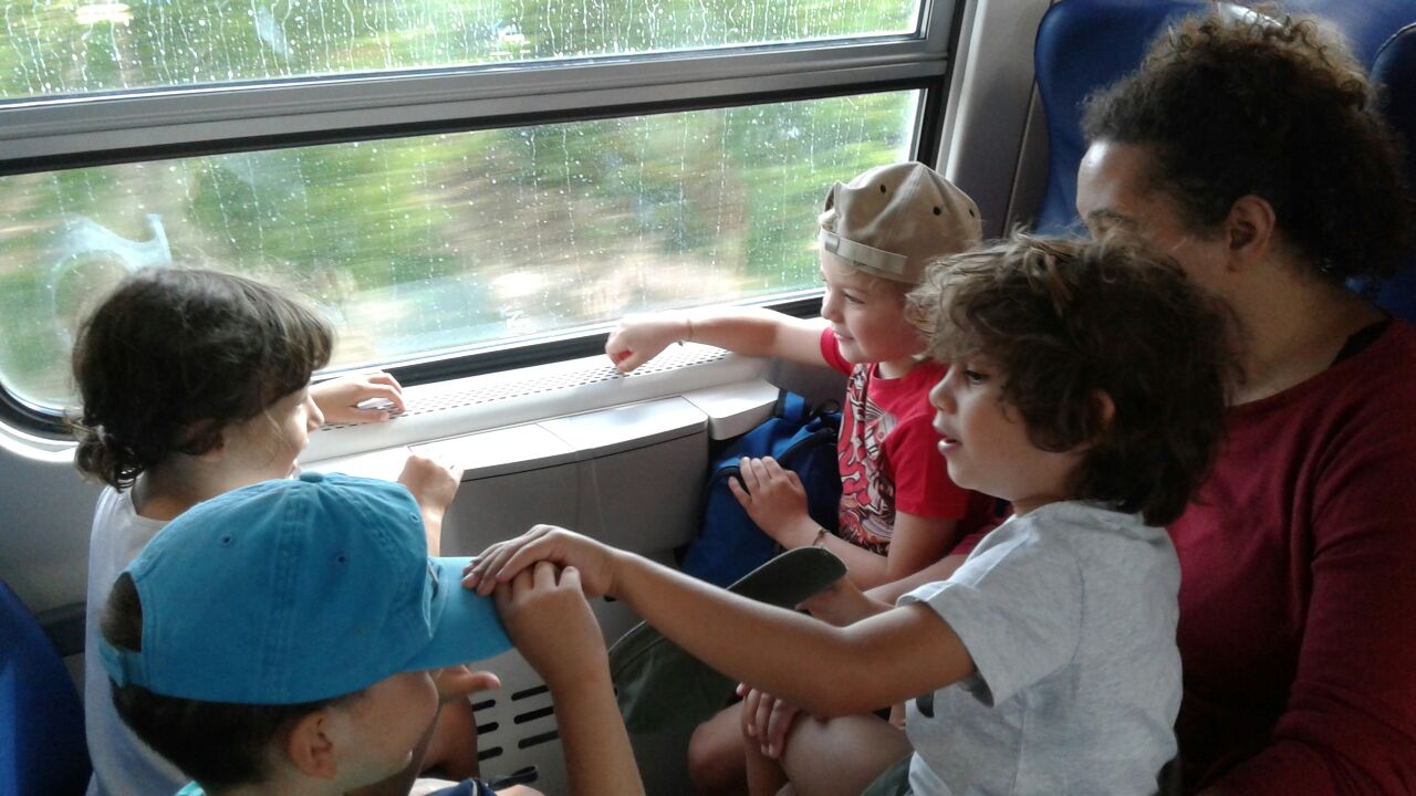 Ma partiamo dall’inizio: ritrovo x tutti quanti davanti alla stazione centrale. Bimbi eccitati, ognuno col proprio zainetto sulle spalle, man mano arrivano coi genitori, ai quali lanciano un’ultima occhiata prima di salutarli. E mentre aspettiamo chi arriva un pochino dopo, improvvisiamo un cerchio e cantiamo, sotto lo sguardo curioso e divertito (e forse anche un po’ ammirato) delle persone che passano.
