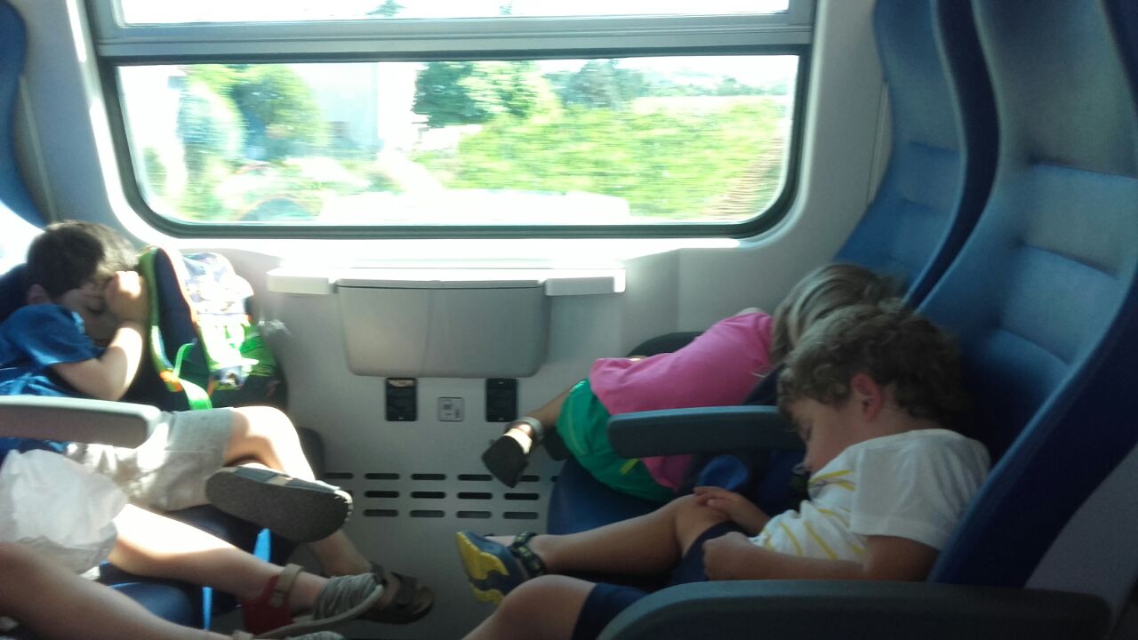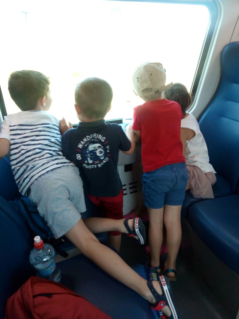 Finalmente saliamo sul treno e prendiamo posto a sedere. E, oltre al treno, partono le mille domande dei bimbi più curiosi: qual è la prossima fermata? A quanto sta andando il treno? E adesso? Perché ora sta rallentando? Quanto manca?