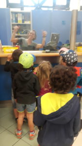 Qui abbiamo incontrato un signore simpatico, che ci ha accolto al suo sportello, ci ha spiegato il viaggio che compie la lettera e ha fatto i conti del francobollo insieme ai bimbi.