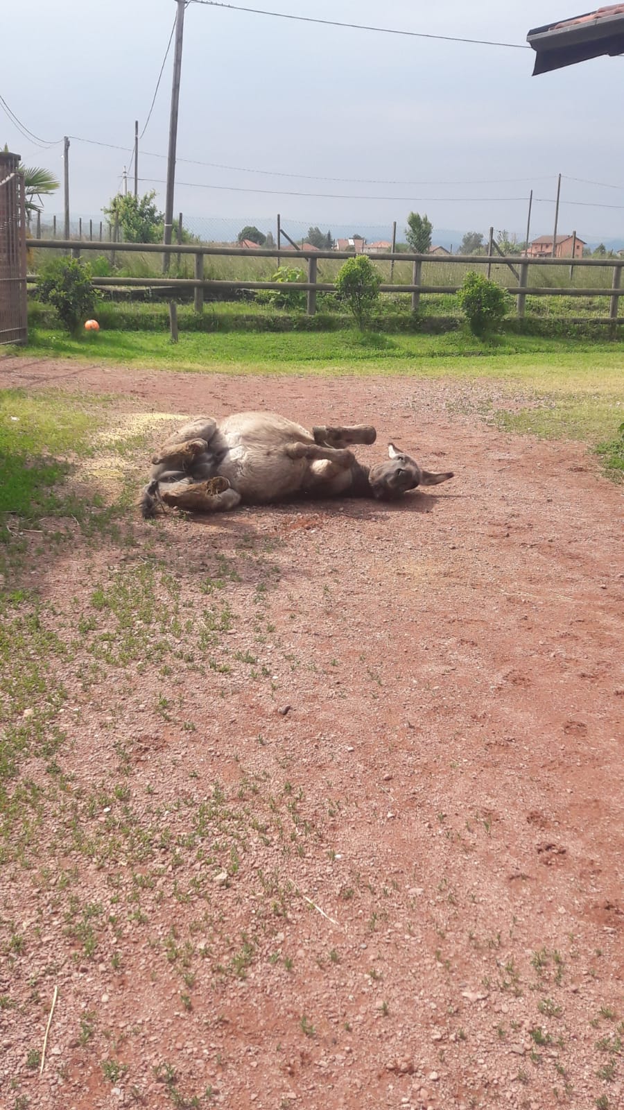 Che dire poi del ciuchino? La sua simpatia e la grande intelligenza ci hanno messo alla prova in un altro modo. Era lui a determinare il momento e il tempo dell’incontro, scegliendo con cura chi e quando. Dopo  spettacolari rotoloni sul prato, dopo averci osservato discretamente mangiando l’erbetta, il suo sguardo fermo avvisava che stava venendo da te. Sostenerlo è stata una esperienza profonda, così come poterlo finalmente accarezzare accettando di non essere noi ad avere in mano il gioco.