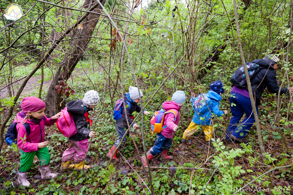 Con grande emozione abbiamo esplorato passaggi impervi nel bosco cercando un sentiero non segnato, facendoci strada tra rovi e tronchi, tutti in fila parlando e sostenendoci e ascoltando in silenzio i mille suoni che ci stupivano.