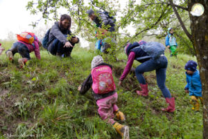 Li in mezzo al verde abiamo incontrato ragni dai colori sconosciuti, farfalle, uccellini, vermi di vario tipo… abbiamo raccolto i botton d’ro e ammirato le orchidee selvatiche e ci siamo sentiti grandi nel ritrovare il sentiero per uscire e rotolarci finalmente nel pratone.