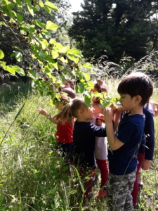 Ogni volta vediamo i bimbi muoversi un po’ come a casa tra piante e frutta, chiedere, cercare, scoprire e assaggiare con gusto o annusare tutte le aromatiche dell’orto., correre tra i filari della vite e finalmente riconoscere sia l’ortica che pizziza, sia la piantaggine che ci da sollievo se strofinata sopra le bolle.