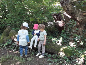 Ci raduniamo in piccoli gruppi e sentiamo il canto di molti uccelli diversi, il fruscio del vento e anche strani suoni come sognati ad occhi aperti: c’è chi sente un elefante, chi un folletto, chi un ragno parlante!