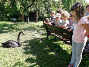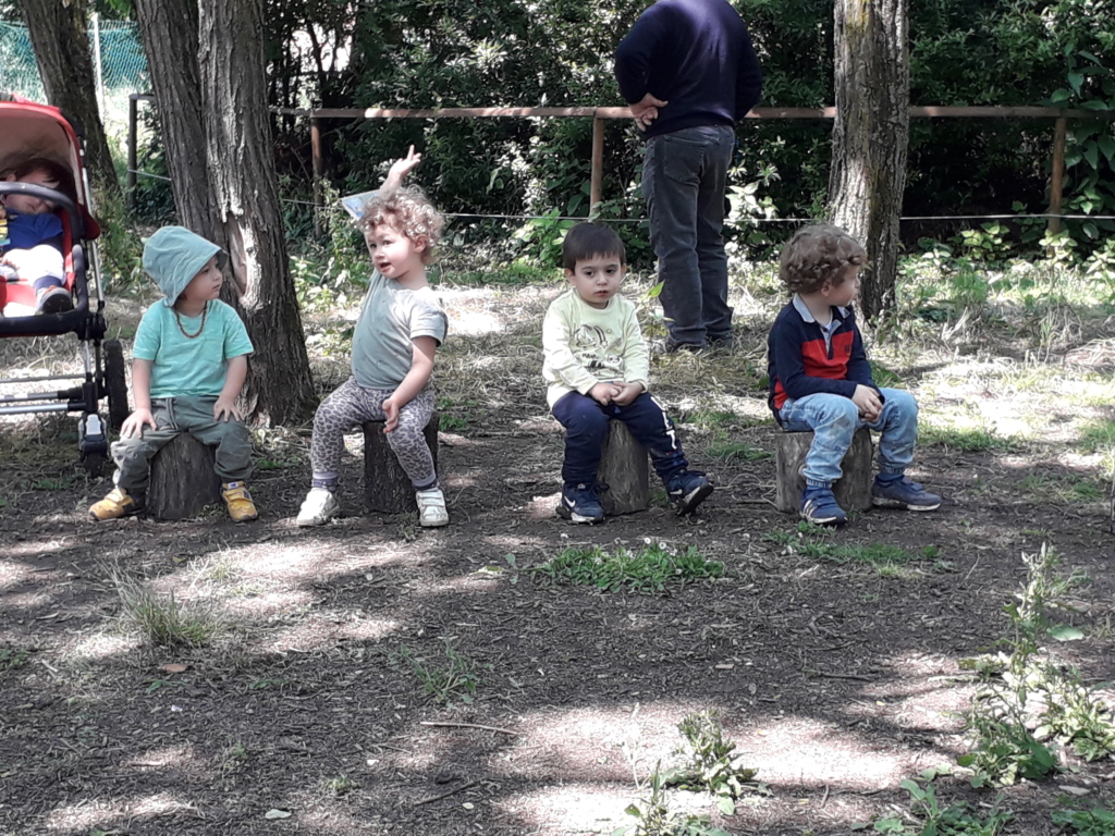 Per non essere troppo ivadenti rispetto agli animali e alle pianti ci dividiamo in gruppi da 14 bimbi circa, tra piccoli e grandi così da poterci sostenere se serve e conoscerci meglio.