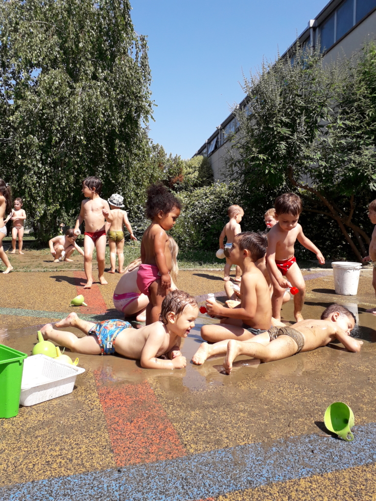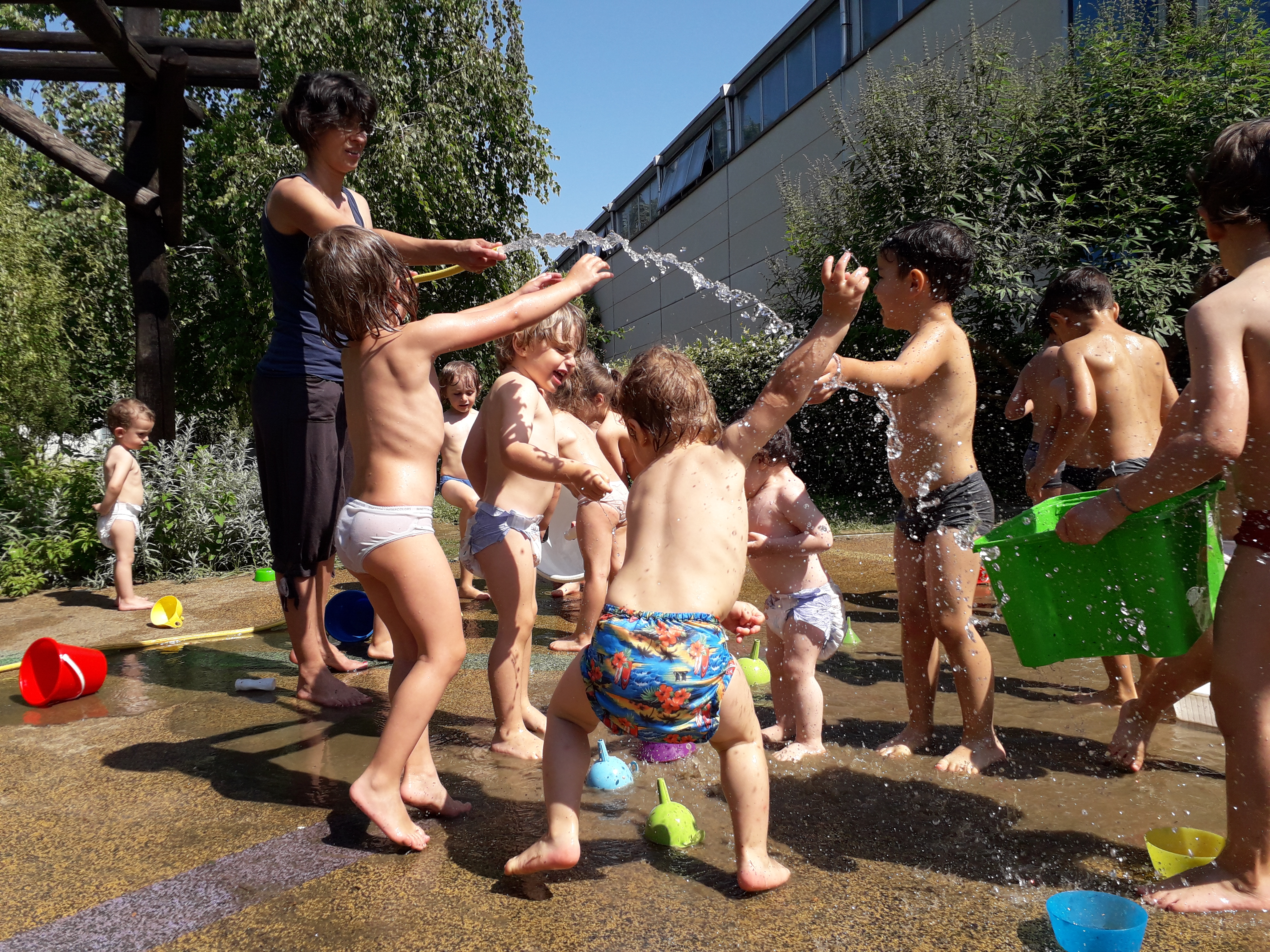 I più temerari corrono dietro alle dade che hanno in mano il tubo dell’acqua e allora partono piccole sfide, scherzi, momenti di coraggio e di fuga, risate e qualche scivolone!!