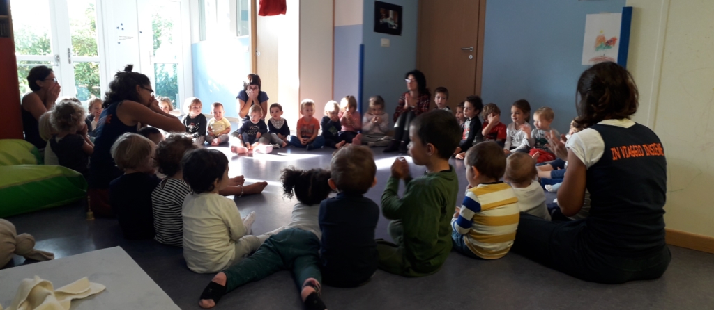 In Atelier nei cerchi mattutini i canti sono sempre presenti, i bambini più grandi hanno le loro canzoni preferite e chiedono di cantarle tutti insieme, i più piccoli le imparano fin dai primissimi giorni mentre gli sguardi si sintonizzano ballando, saltando e facendo piccoli gesti legati ai testi delle canzoni.