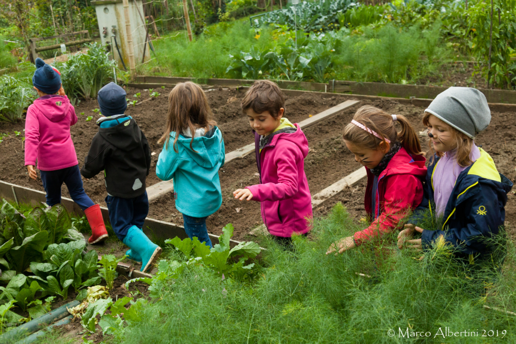 Ci lasciamo guidare nella visita paciugando con i piedi nel fango, comodi dentro i nostri stivali e felici di poter sguazzare senza limitazioni… ma soprattutto esploriamo l’orto dove cerchiamo di capire le varie piantine seminate e ne riconosciamo molte.