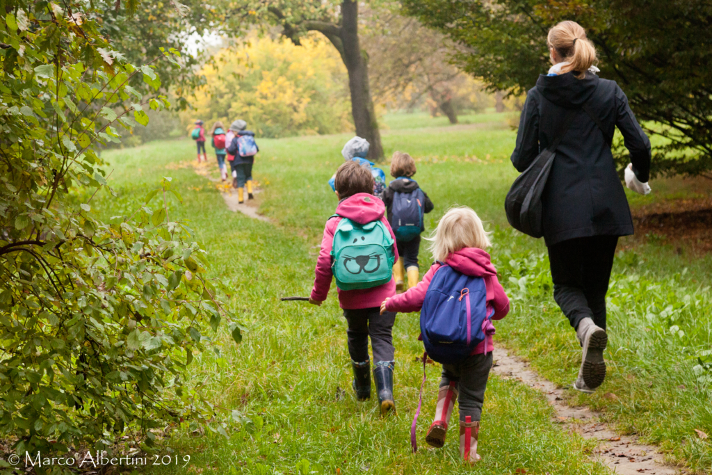 Tutta la materna insieme per esplorare un Parco che è il preferito del nostro dado giardiniere, il dado Paolo!
