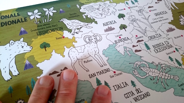 Europa Settentrionale, Europa Meridionale, Asia Occidentale, Africa… Nord, Sud, Est, Ovest. Giochiamo un po’ con queste parole strane, punti cardinali, troviamo il nord. Giochiamo a perdere la bussola. Ma si torna presto a guardare le mappe, perchè questi animali disegnati sopra attraggono troppo.