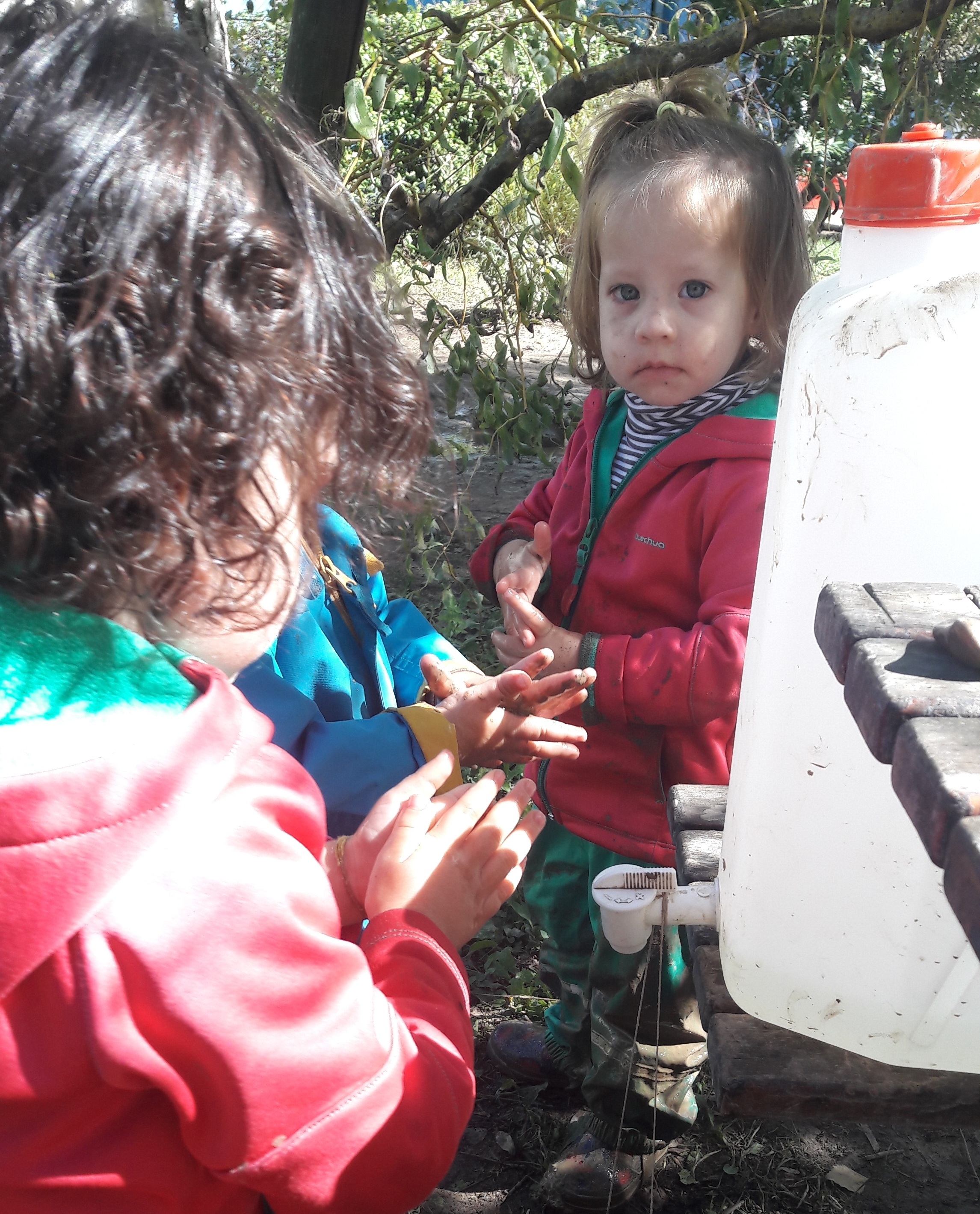 Non è stato semplice ma nemmeno così diverso nelle “grandi cose” : più burocrazia certo e un susseguirsi di linee guida e formazioni on line che rimettono in discussione quanto detto poco prima; protocolli da inventare cercando di capire come poter applicare qualcosa di nuovo mentre noi viviamo la nostra giornata con delle persone piccole, stupendamente spontanee e a volte imprevedibili e anche le normali routines sono un continuo rimetterci in discussione e riadattarle a loro che crescono e che ogni anno non sono gli stessi dell’anno prima; pulizie e igienizzazioni che si intersecano al vivere all’Atelier molto più di prima e che i bimbi a volte prendono come un gioco divertente e un bel rituale. Allora lavarsi le mani nella tanica in giardino lo farebbero in qualsiasi momento sfidando lo sguardo delle dade e creando laghi di fango o cercando di igienizzarsi le mani prima…dopo..durante…