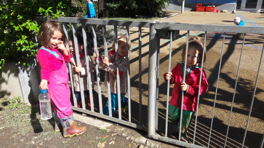 Poi ci sono quei momenti in cui i bimbi della materna vengono al cancello, bighellonano un po’ li, soprattutto i piccoli, il cui percorso di passaggio è stato interrotto a febbraio e che ora si trovano al di là… si appoggiano e ti chiedono cosa fai, perchè è chiuso. Poi si mettono a cantare mentre tu fai il cerchio, ti chiedono il nome dei bimbi nuovi o si emozionano quando passa la sorellina. Sono attimi poi scappano a fare i loro giochi e li ritrovi dopo un po’ sotto la pergola con la vite a passare l’uva tra i rami. La nostra uva è un po’ ribelle, va dal nido alla materna creando intrecci e spazi dove passarsi un chicco, sedersi sotto, di qua e di là, a racontarsi piccole cose… rimanere nascosto a guardare.