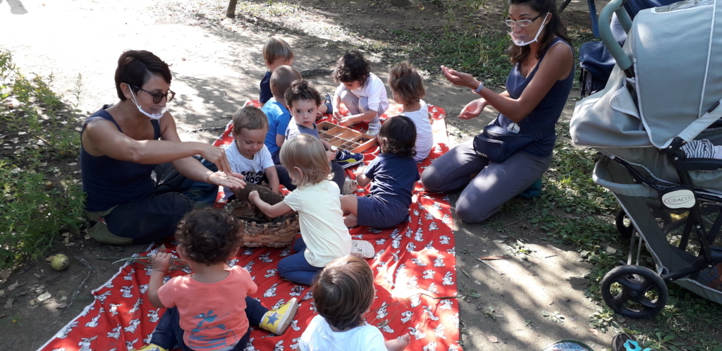 Un ruolo speciale lo ha ricoperto il nostro splendido giardino, che ha accolto e stemperato le emozioni dei primi inserimenti, vissuti totalmente all’aperto, e che continua ad aiutarci accogliendoci ancora ogni giorno: anche gli ultimi bimbi arrivati appena escono all’aria aperta lasciano volare via magoni e fragilità, accolti e trascinati dalle tante possibilità che ci attendono “là fuori”.