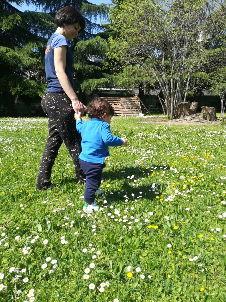 Il benessere così raggiunto ha influito positivamente anche sull’esperienza vissuta dai bambini. La serenità delle dade riesce ad accogliere eventuali disagi di alcuni dei bimbi (non tutti, vista la giovane età specialmente al nido, hanno significative esperienze vissute all’aperto) e a riconoscere e sostenere gli intenti di altri, desiderosi di esplorare, scoprire, sperimentare.