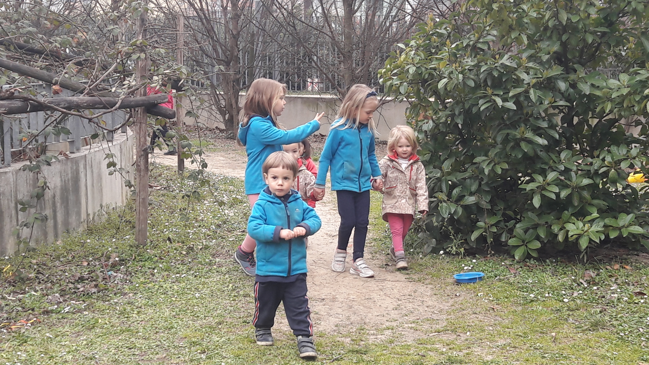Il giardino, quieto e silenzioso che, con il suo timido verde ci fa sentire l’arrivo della primavera, si anima di un vociare allegro, delle corse emozionate dei piccoli, della “forte” presenza dei grandi.