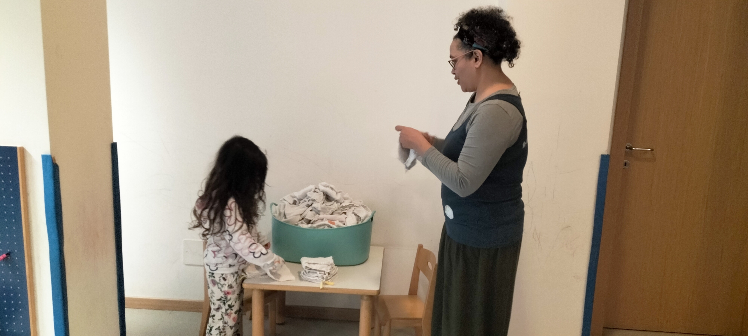 È un ruolo che può sembrare “nelle retrovie” rispetto a quello dell’educatrice presente sul gruppo ma che, in realtà, permette di assumere una prospettiva diversa e più ampia della situazione: il collaboratore entra in scena in diversi momenti specifici, a volte sul bisogno contingente, potendo così avere uno sguardo diverso su ciò che vivono gli altri, i bimbi e le colleghe: può essere il cambio di un bambino che si è sporcato, oppure per la preparazione dei bimbi quando si va fuori o in quelle situazioni nelle quali è importante un diversivo all’interno delle dinamiche del gruppo.