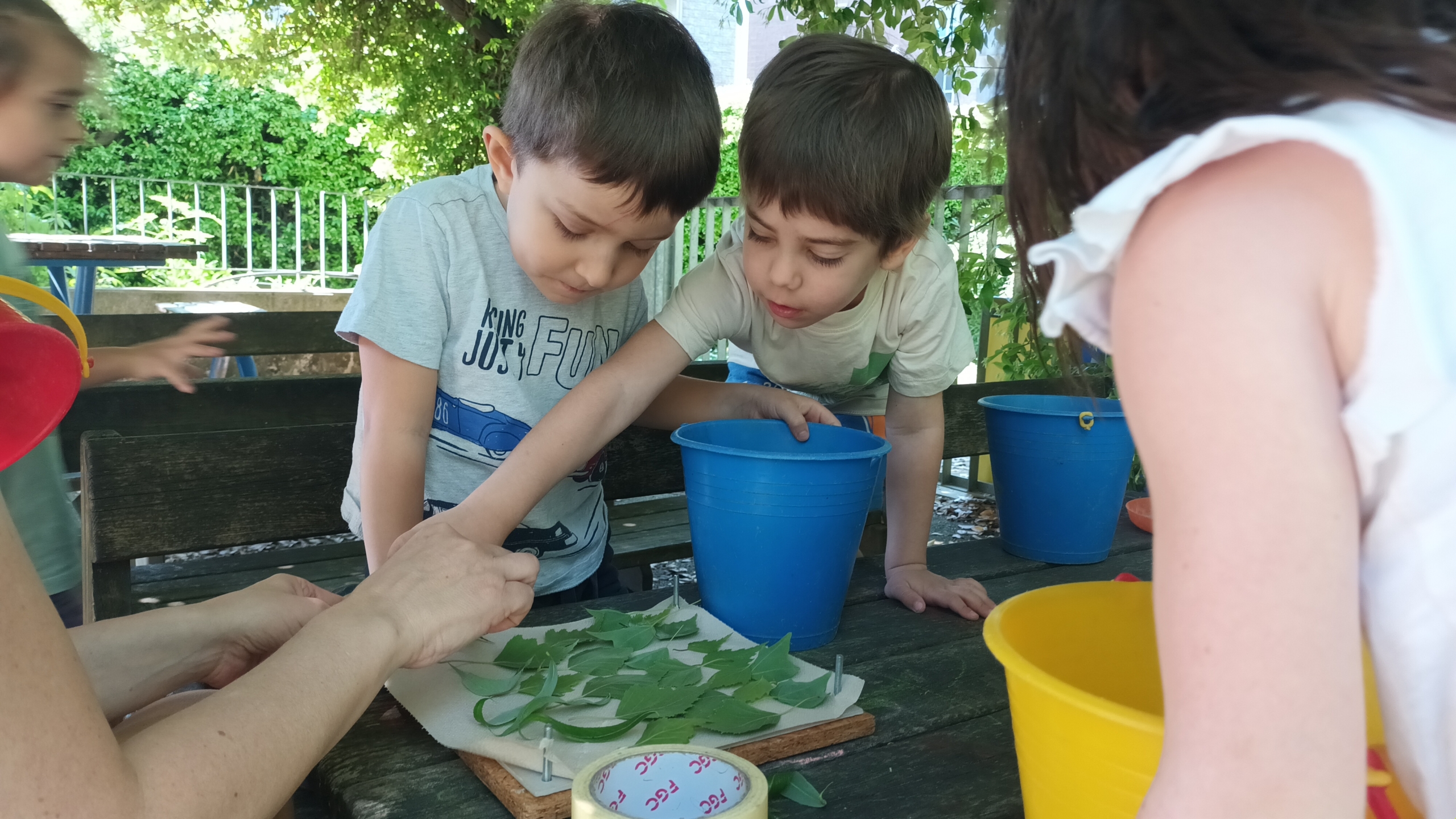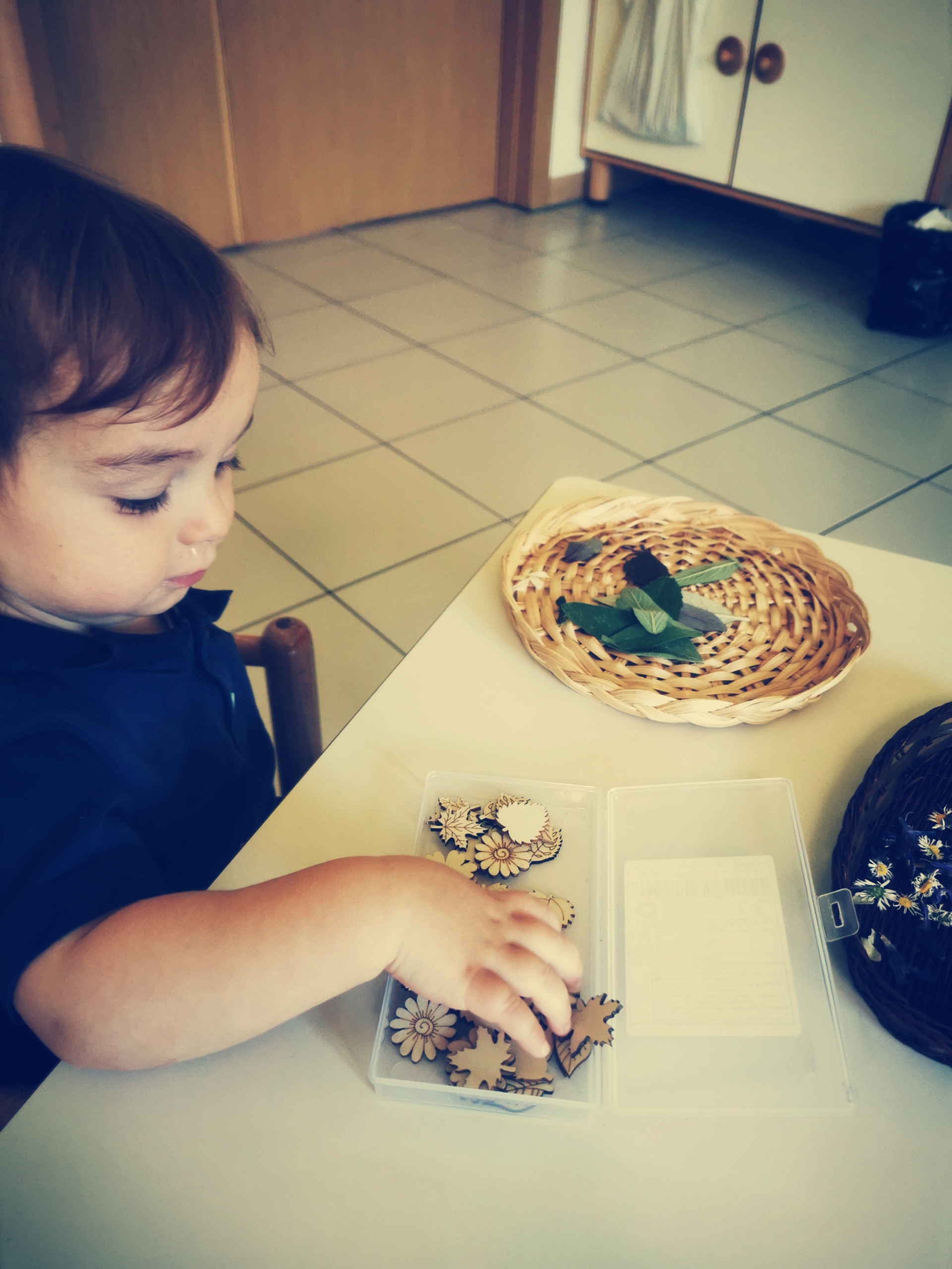 La collaborazione dei bimbi è essenziale. Questa volta siamo partiti dai grandi dell’Atelier che hanno raccolto le foglie e i fiori più magici del nostro giardino.